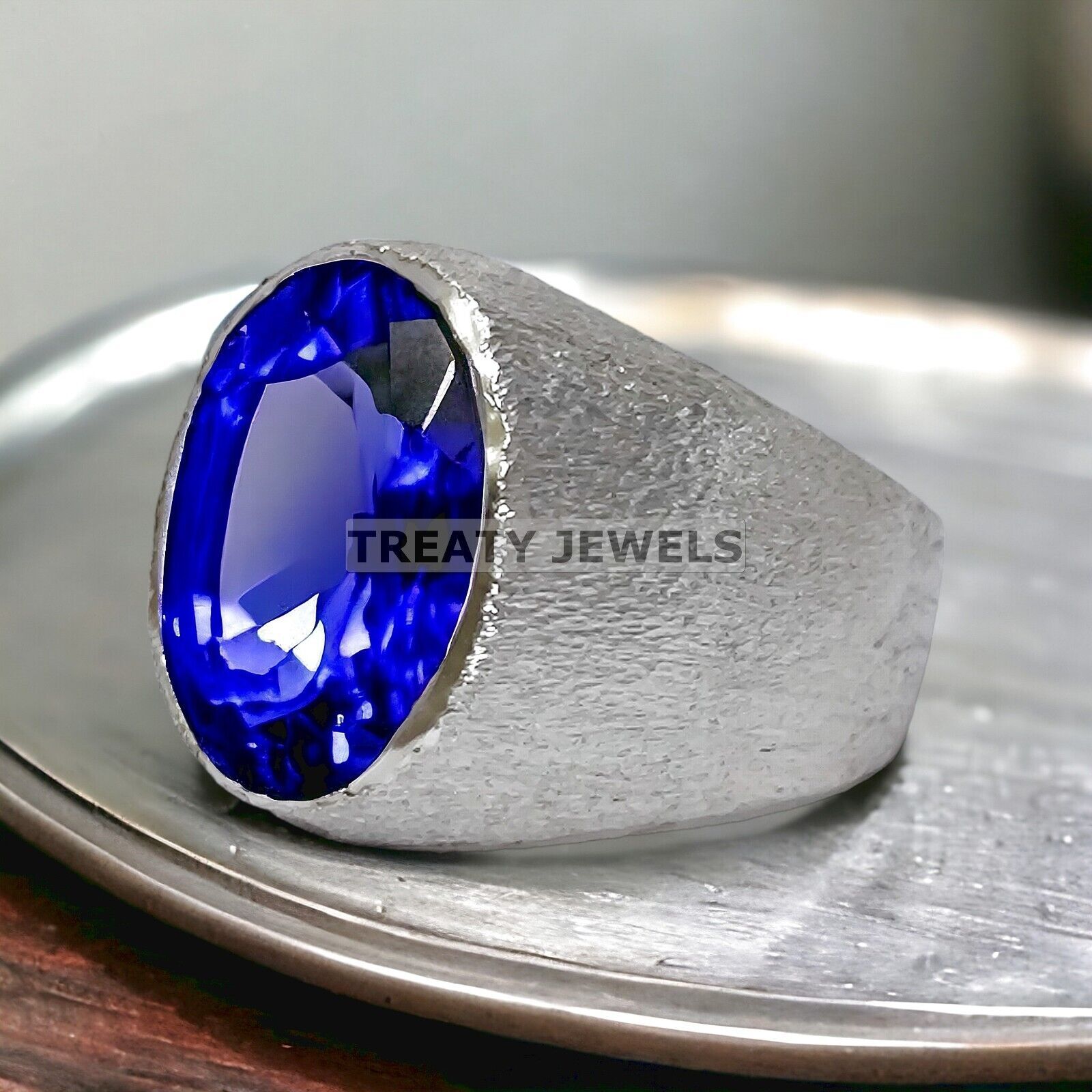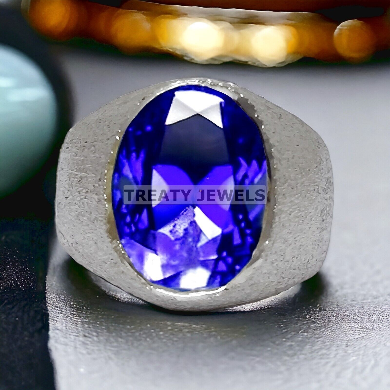 Tanzanite Oval Cut Gemstone With 14K Solid White Gold Ring For Men's #A96