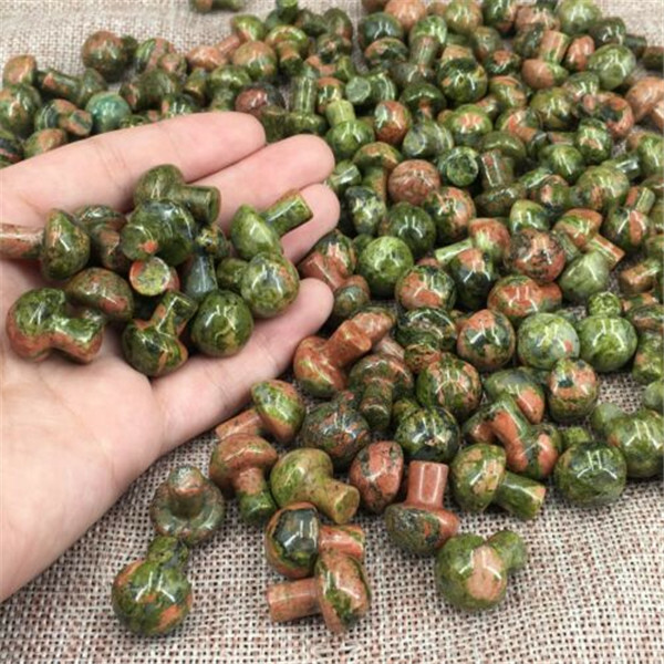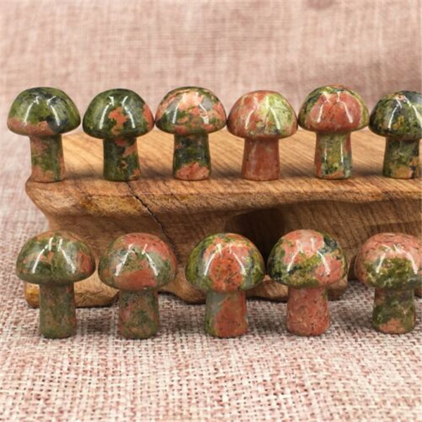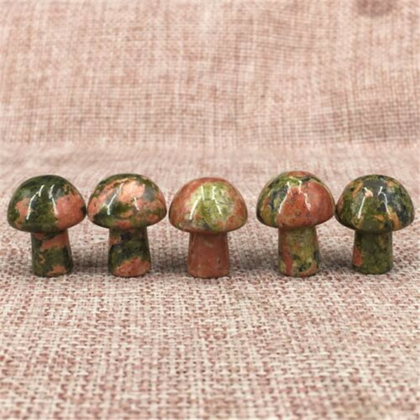 Mini Unakite Stone Mushroom Hand Carved Crystal Healing, 20pcs