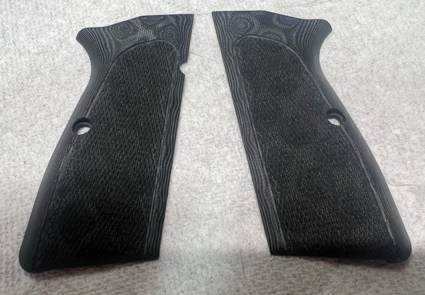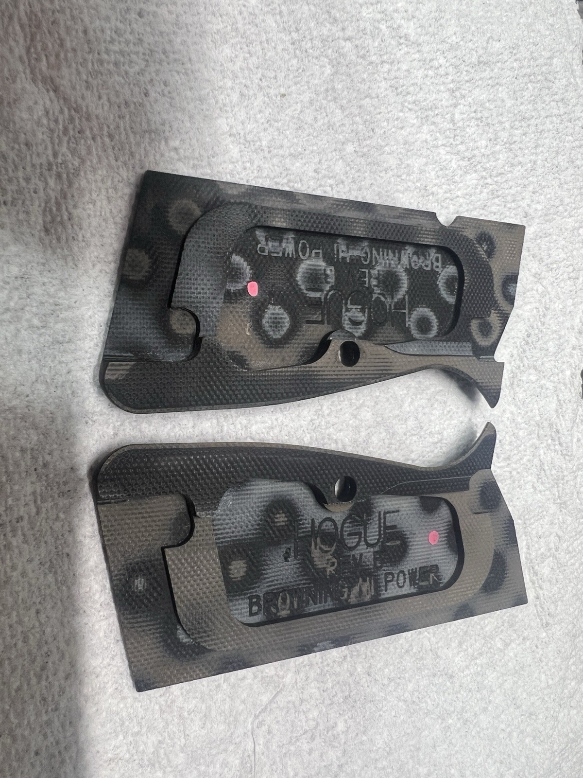 The Hogue Hi Power G10 Checkered Black/Gray Grips are used good condition and do not include screws.