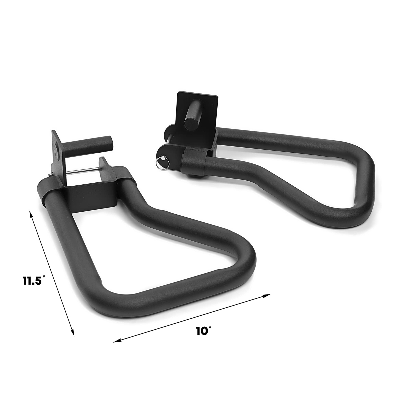 COMPATIBILITY NOTE: Designed to fit 3”x3” tube with 1” hole Squat & Power Racks. Please ensure to check your rack dimensions before purchasing to avoid any inconvenience of returning the product.MULTIPLE GRIP POSITIONS FOR VERSATILE WORKOUTS: With three different ergonomic multi-grip dip, pull-up, and push-up handle positions (Angled, Parallel, and Linear), our dip bar attachment allows you to build and target different muscle groups for a well-rounded upper body workout.HEAVY-DUTY CONSTRUCTION 500lbs CAPACITY: Built with a high-density gauge steel frame and coated in black powder, dip & pull up bar attachment can support weights of up to 500 lbs.ADDED SAFETY FOR PEACE OF MIND: Safety pin that locks in the dip bars for added safety during your workout. This ensures that the attachment stays securely in place, giving you the confidence to focus on your exercises without worrying about stability or safety.QUICK & EFFORTLESS ASSEMBLY: Just slide pin into 1” power rack's hole, then swing down to lock it in place, lock the safety pin, and start the exercise.