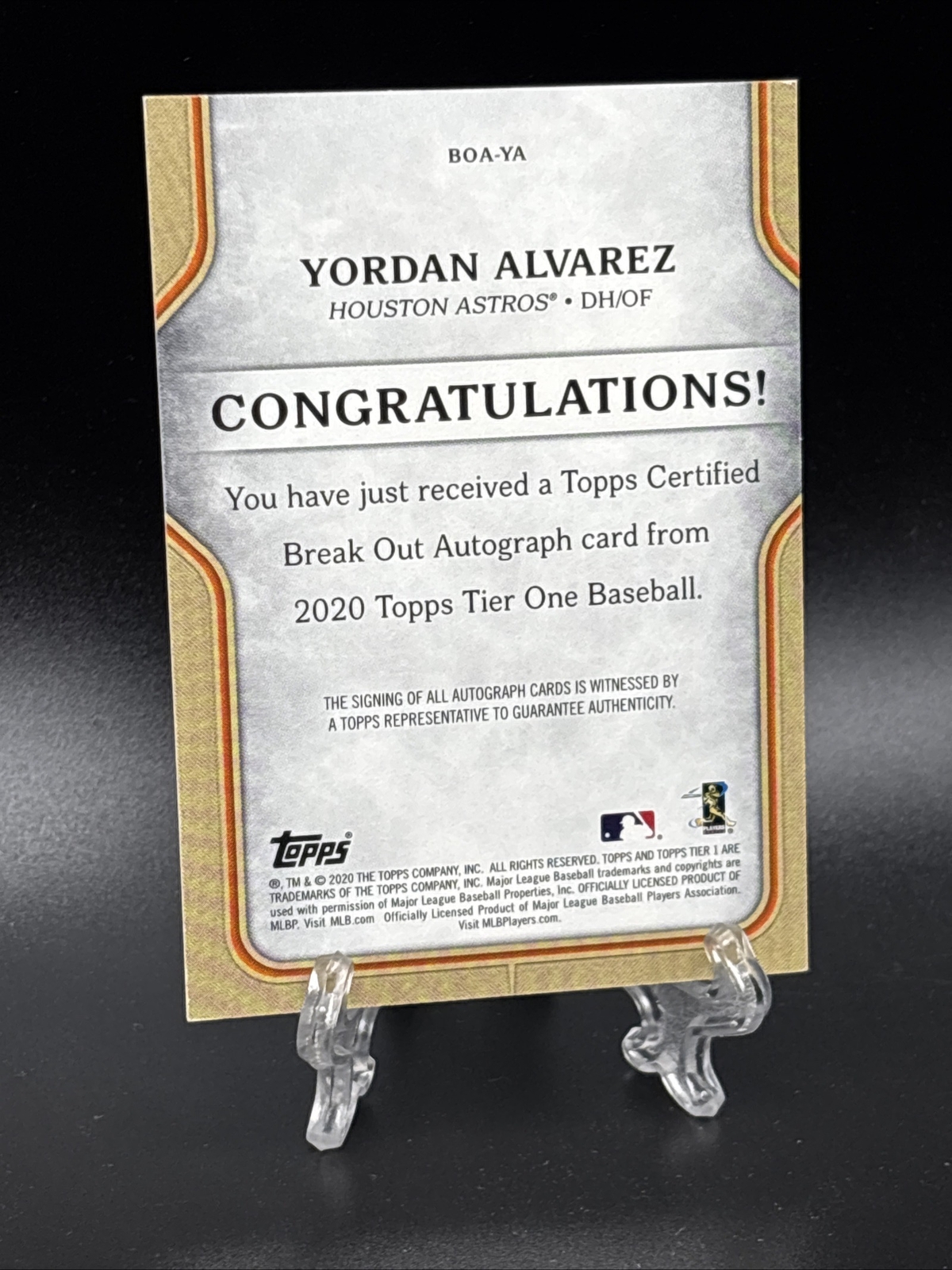 2020 Topps Tier One Yordan Alvarez Break Out Rookie Autograph Card #’D 195/299