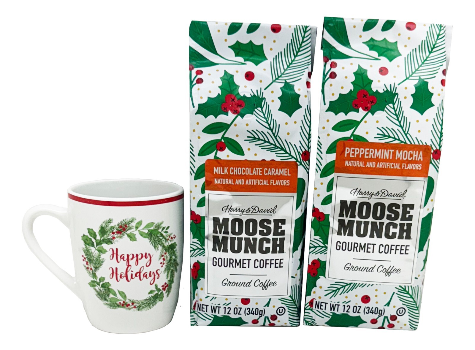 img Delightful holiday coffee gift bundle featuring two gourmet flavors—Moose Munch Milk Chocolate Caramel and Peppermint Mocha—paired with a festive mug.Moose Munch Milk Chocolate Caramel: Rich, smooth milk chocolate with a caramel twist, inspired by the iconic Moose Munch treat.Peppermint Mocha: A seasonal favorite blending cool peppermint with decadent mocha for a refreshing, cozy brew.Perfect for: Coffee lovers, holiday gift exchanges, friends, family, and anyone looking for a comforting seasonal beverage.Mug Details: Festive design to elevate your coffee experience—ideal for enjoying these gourmet blends.Thank you for visiting our page!! Terms of Sale: We accept PayPal. Payment must be received within 3 business days of auction close. We will send you an invoice for your purchase. Please contact seller within 48 hours of auction close to confirm receipt of your invoice and to discuss any matters relating to your order. We will not be held liable for any incident, accident, or consequential damages related to the use or misuse or this item under any circumstances. The appropriate feedback will be posted for all successful bidders. We value your honest opinion and making sure you are satisfied with your purchase. Should you feel the need to provide negative feedback please contact us first to give us the opportunity to try to resolve any issues you may have. Please ask any questions you may have with regards to your purchase well in advance of the auction close. We will be happy to respond in a timely manner to assist you in any way we possibly can. We also will be happy to send you additional digital photos of the merchandise for you to inspect. Feel free to contact us should you have any questions. All merchandise is sold FOB from our warehouse. We accept no responsibility for the merchandise once it leaves our location. Any claims must be handled with the shipping company. Good Luck and Thank You for Your Interest In This Item. “Best offer” is for 2 or more units purchased at the same time. No “Best offer” accepted on the purchase of only 1 unit. <!-- @font-face @font-face @font-face @font-face p.MsoNormal, li.MsoNormal, div.MsoNormal @page WordSection1 div.WordSection1 @list l0 @list l0:level1 @list l0:level2 @list l0:level3 @list l0:level4 @list l0:level5 @list l0:level6 @list l0:level7 @list l0:level8 @list l0:level9 ol ul -->