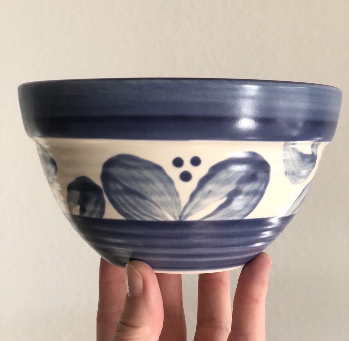 Pfaltzgraff Villa Flora Soup Cereal Bowl Blue White Purple Leaf Pattern VTG