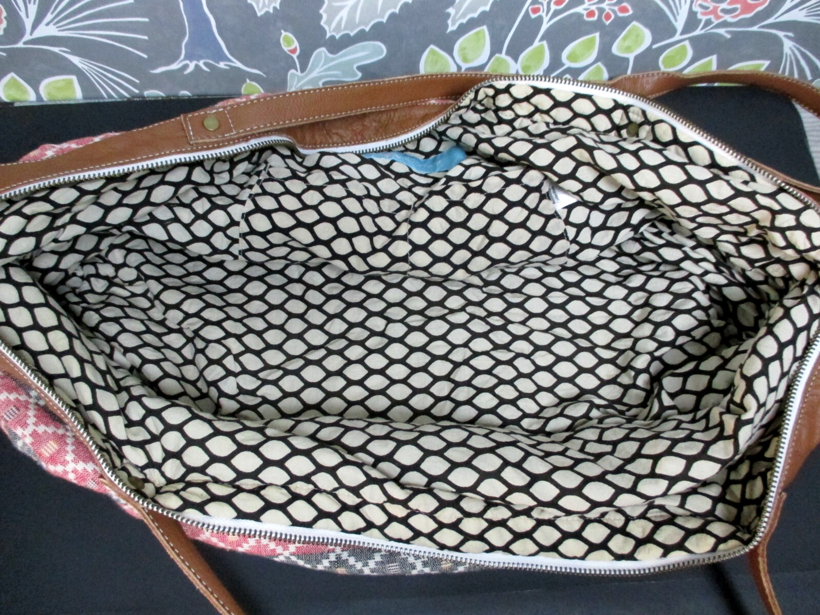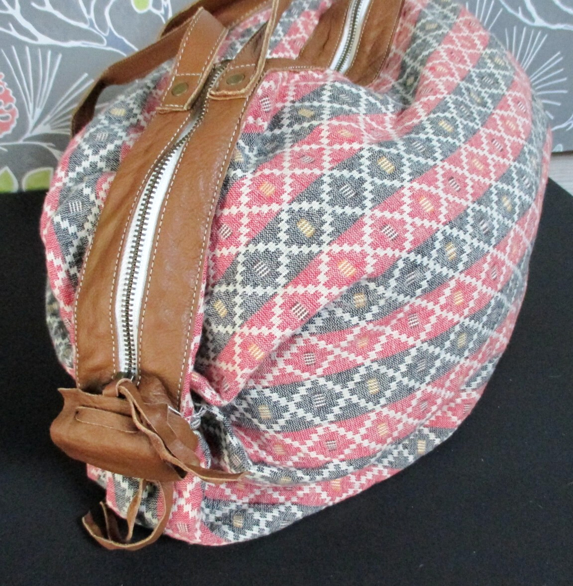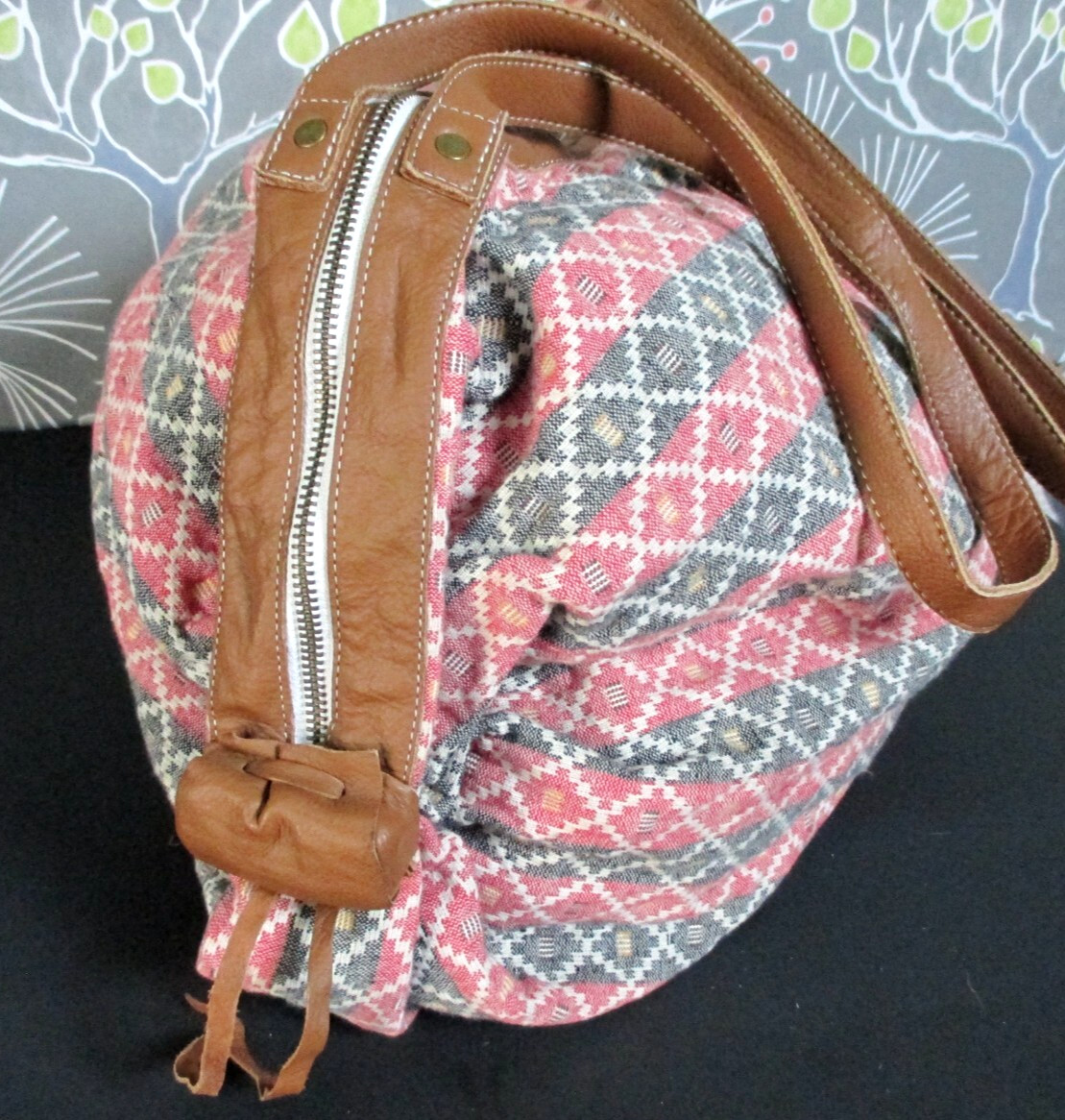 Noonday Collection Boho Shoulder Tote Shopper Duffel Bag with Leather Trim