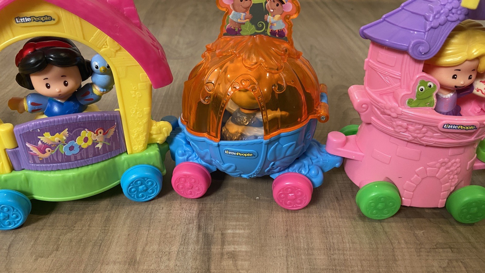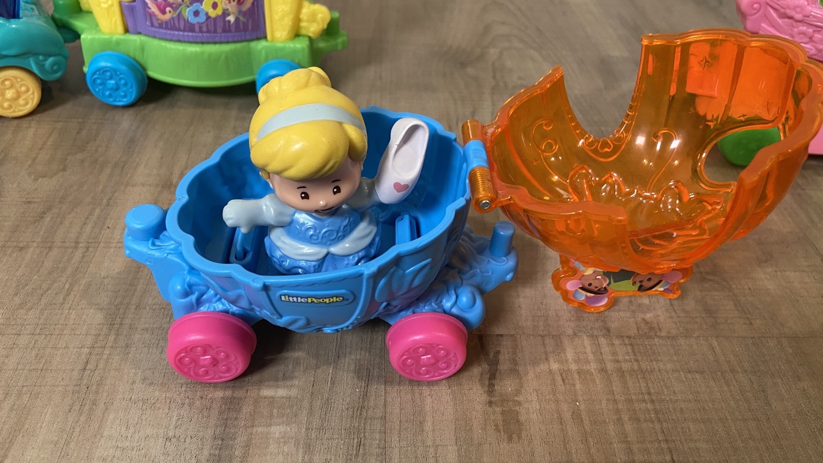 This listing features a used Fisher-Price Little People Disney Princess Parade train set from the Toys & Hobbies category. The set appears to include a multi-float parade-style train with Disney Princess characters such as Ariel and Cinderella; check the listing for details on exactly which figures, floats, and accessories are included. Condition is used, so expect normal play wear and review photos and the seller’s notes for completeness and cosmetic details. Free shipping is included, making it easier to budget the total cost. Check the listing for details.