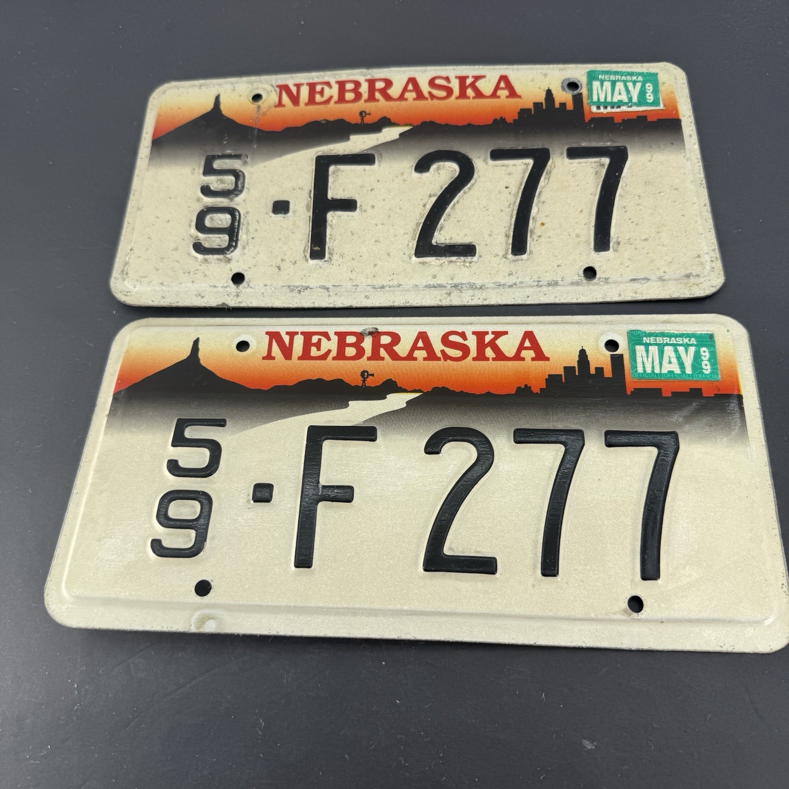 Vintage 1999 Nebraska License Plate Plates PAIR / SET 59-F277