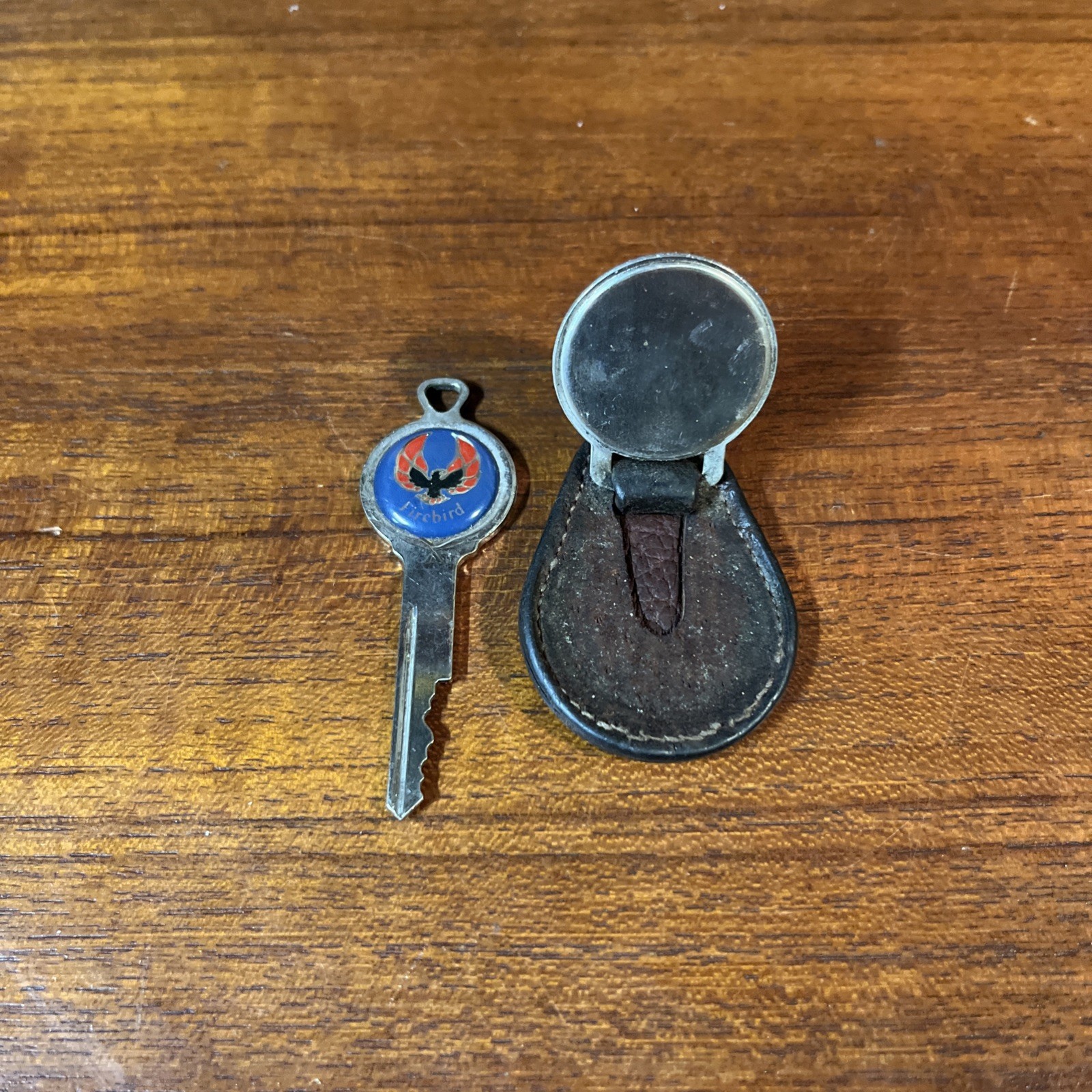 Vintage 1970s Pontiac Firebird Leather Metal Keychain Keyring w/ Key