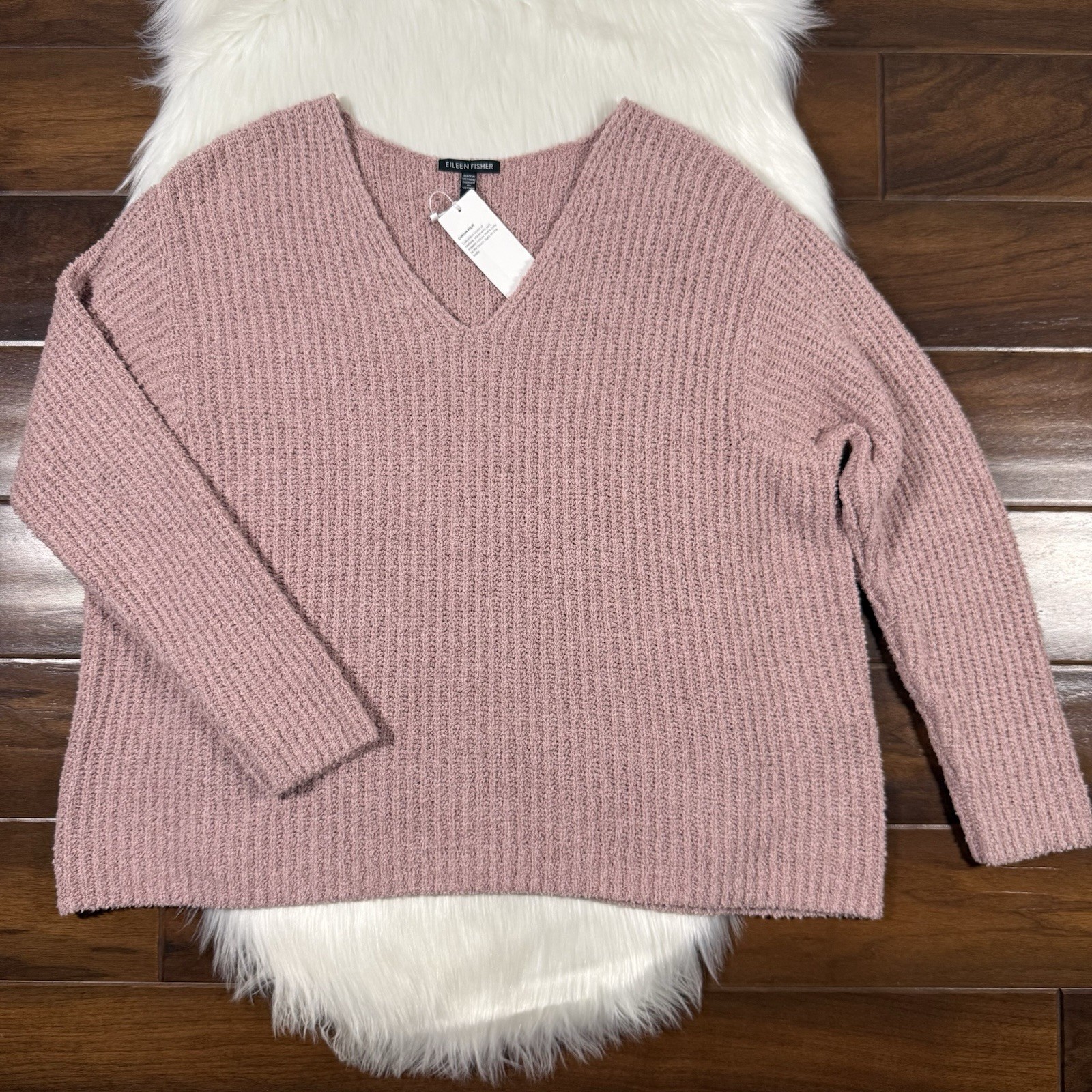 Eileen Fisher Women's Size XL Organic Cotton Fluff V Neck Sweater Top Cashmere Specs