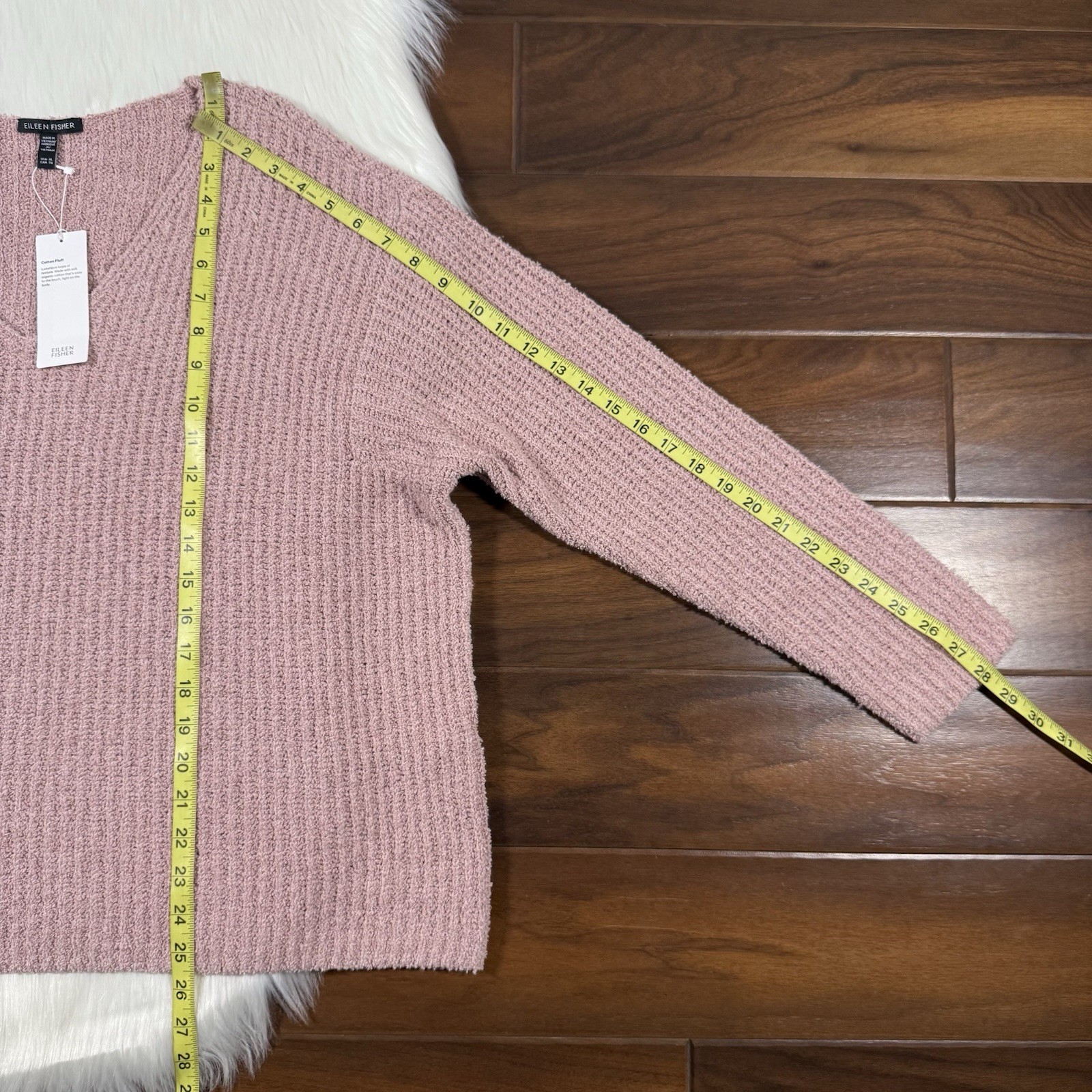 Eileen Fisher Women's Size XL Pink Opal Organic Cotton Fluff Cashmere Blend V Neck Sweater Top, 92% Organic Cotton 5% Cashmere 3% Recycled Polyester, Stretch, Style # F4FNP-W6138MNew with tagsPictures show full details and measurementsThanks for looking and if you have any questions, fell free to message us! Check out our other items for sale!