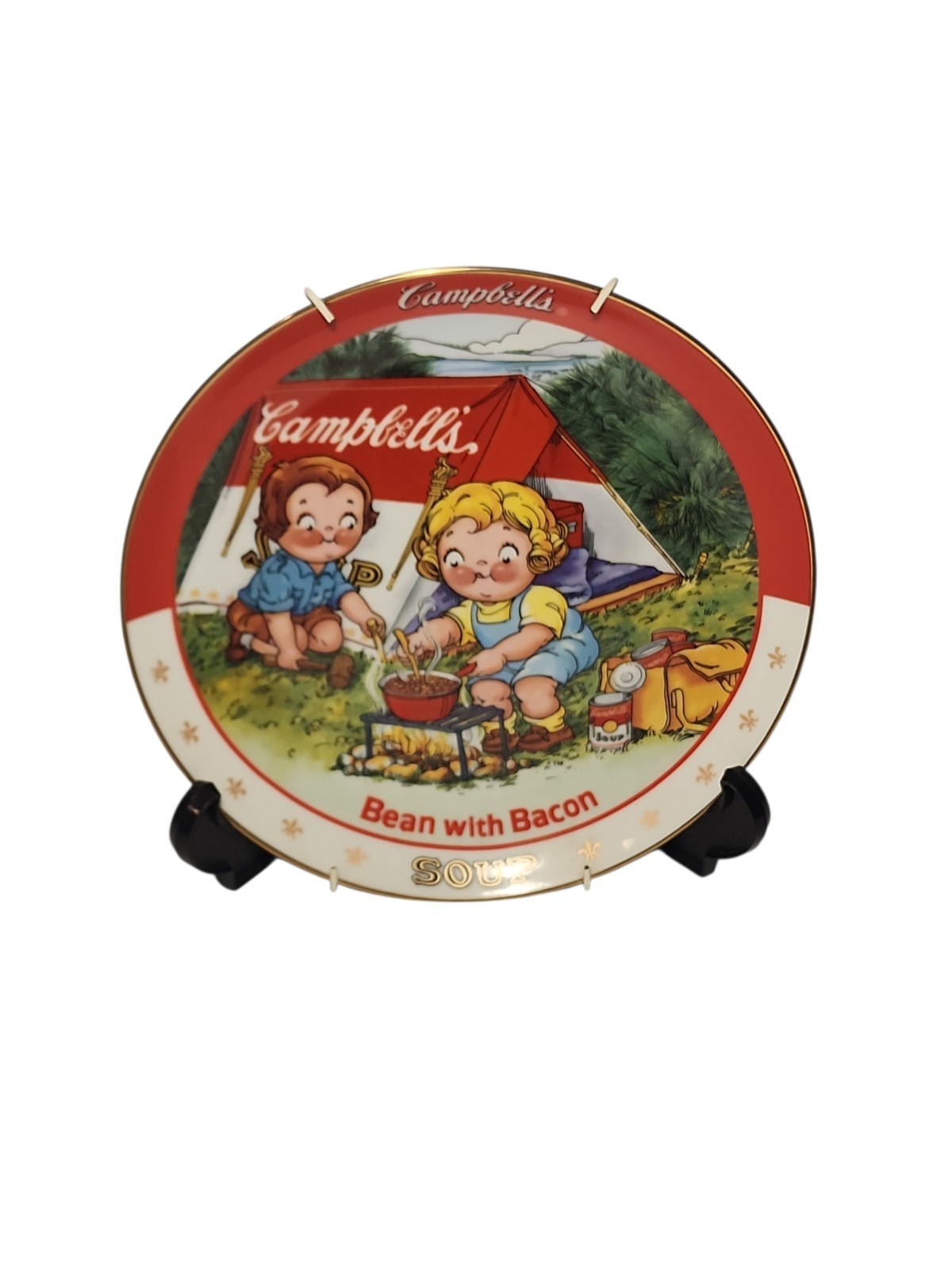 The Vintage set of 7 Danbury Mint Campbell's Soup 8" Plates from 1994. This cute Set Of 7 Vintage plates are a charming collector's item featuring a nostalgic design of the Campbell Soup Kids featuring a different soup on each plate. Made of porcelain and with a decorative multi