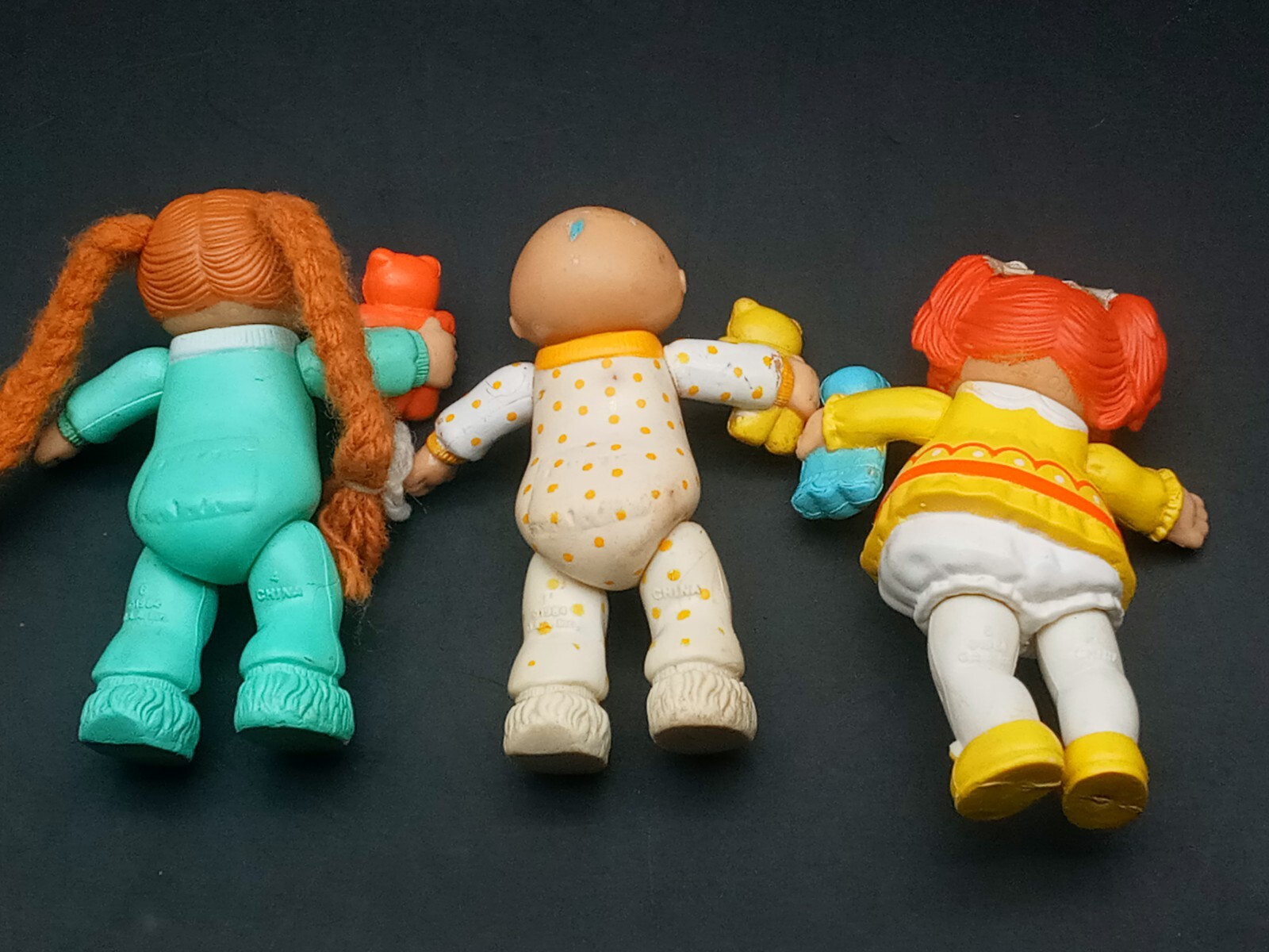 Lot of 3 Vintage 1984 Cabbage Patch Kids Doll Mini Figures PVC Figurines. Figures have minor signs of wear and tear but overall are in excellent shape. There are a couple of spots where paint has chipped away but it is almost unnoticeable. The full