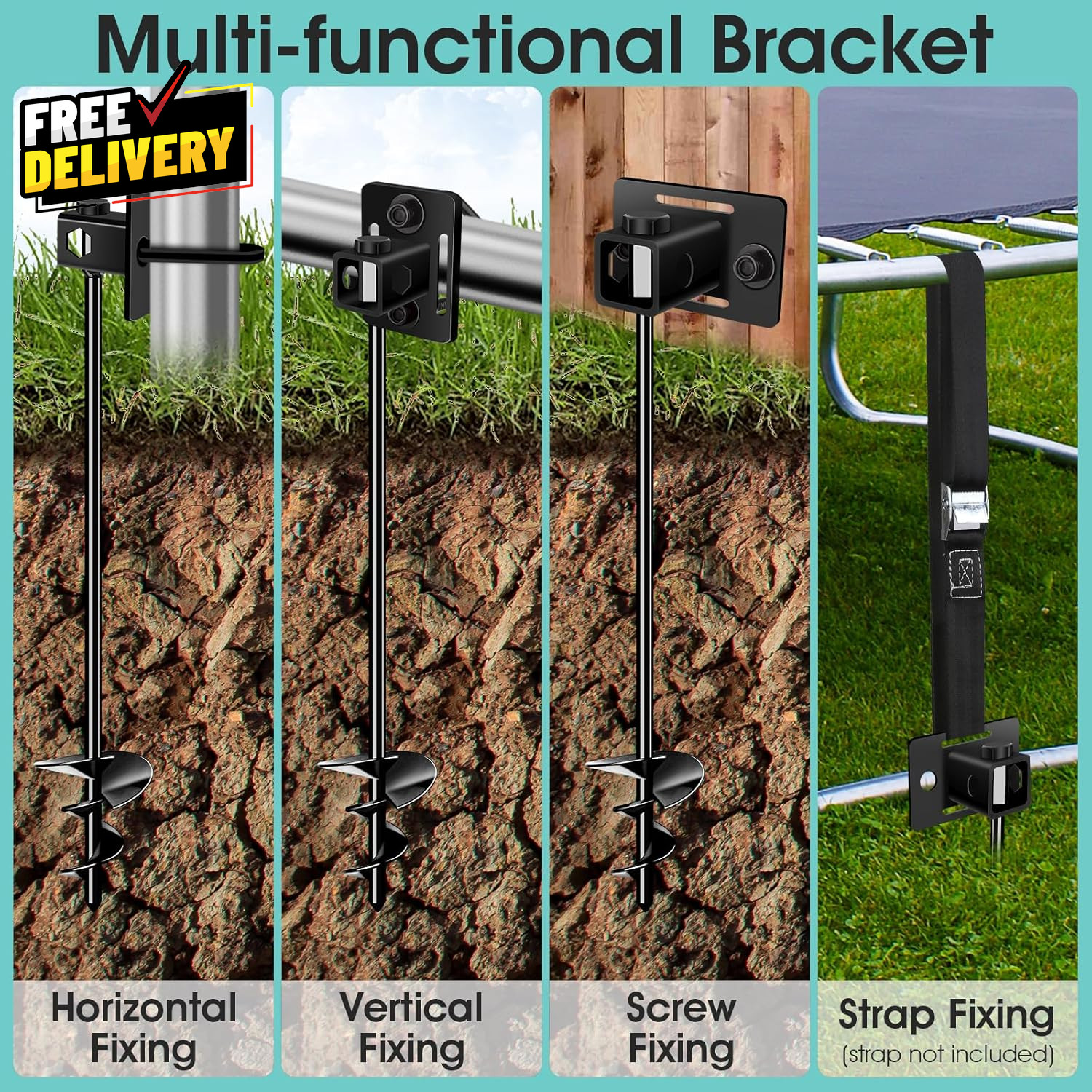 ultimatesavvyshop New Arrivals Add to Favorite View Feedback Contact Ground Anchors Screw In Heavy Duty 3in Spiral Earth Anchor for Trampoline Shed… ? PLEASE CONTACT US FIRST BEFORE TAKING ANY ACTION ? If you face any kind of issue, please reach out to us directly. Especially before leaving Negative Feedback, opening an “Item Not Received” case, or starting a Return. ? We are always happy to assist and resolve any problem quickly and professionally! If you have any questions or require assistance, please don’t hesitate to reach out. Description Part Number YLY-MG-14-2 Item Dimensions LxWxH 13.57 x 4.64 x 0.04 inches Color Black-13"-4pcs Package Weight 2.64 Kilograms Item Weight 2.64 Kilograms Item Length 13.57 Inches Model Name Ground Anchors Number of Items 4 Product Dimensions 13.57"L x 4.64"W Item Package Dimensions L x W x H 12.52 x 5.24 x 4.25 inches Number of Pieces 4 MULTIPLE INSTALLATION METHODS: Screw-in ground anchors can be installed horizontally or vertically by adjusting the top bracket, Or screwing it into a wooden application by unscrewing the top ring, Or by tying a strap through the top bracket STRONG AND STABLE: These shed anchor kits are constructed of premium steel and coated with rust-resistant black paint for durability. The 3-inch-wider anchor blades greatly enhance grip, the main trunk's maximum burial depth of 11 inch, can withstand 75MPH winds EASY TO INSTALL: Just use with an electric drill(Recommended Drill Driver), save time and labor, suitable for different ground conditions WIDE APPLICATION: Ideal for securing mobile homes, sheds, swings, soccer goals, fences, hoses, and other outdoor equipment to prevent wind damage Use with Confidence: This is a heavy duty ground anchor that provides the stability you need without worrying about windy conditions.(If the item received doesn't match your expectations, please refrain from using it, as this may affect your return eligibility.) WARM TIP: The wider spiral blades can provide good grip and very firm. If it is a very hard land, you can Pour Water to the expected place and wait for 2 minutes before drilling, it can be better drilled in