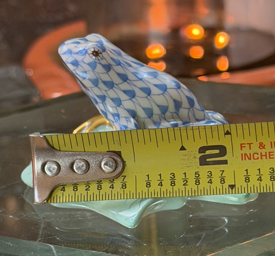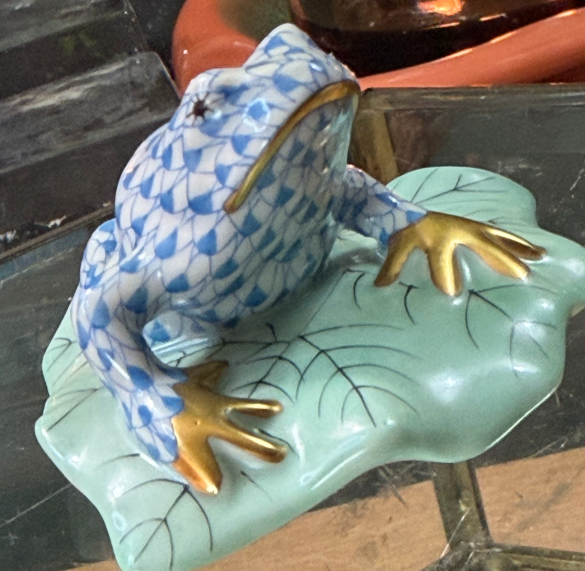 Herend Figurine - Frog on Pad - Blue Fishnet