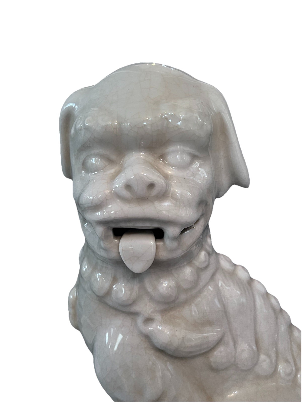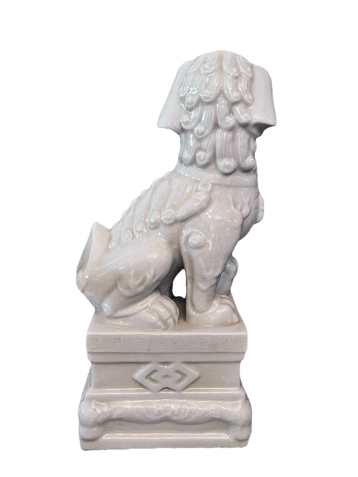 Vintage Foo Dog Porcelain Statue 15.75 in White Glaze Chinoiserie
