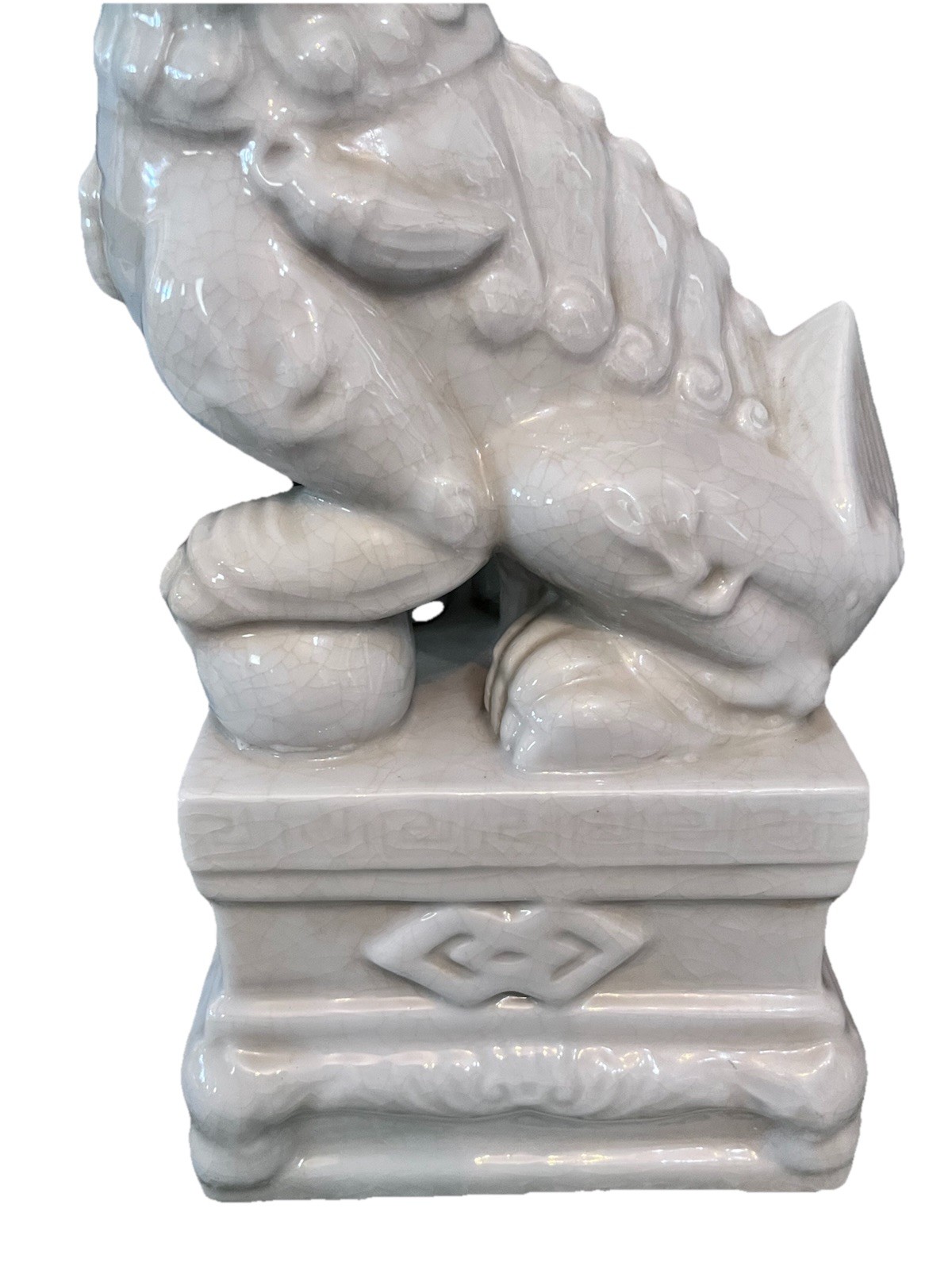 Vintage White Large Foo Dog Ceramic Statue approximately measures 15.75 inches in length by 7.5 inches in width Excellent preowned conditionsmoke free but pet friendly homePlease look over all pictures carefully before purchasingI ship within 24 to 48 hours after receipt of payment Po-8-4336