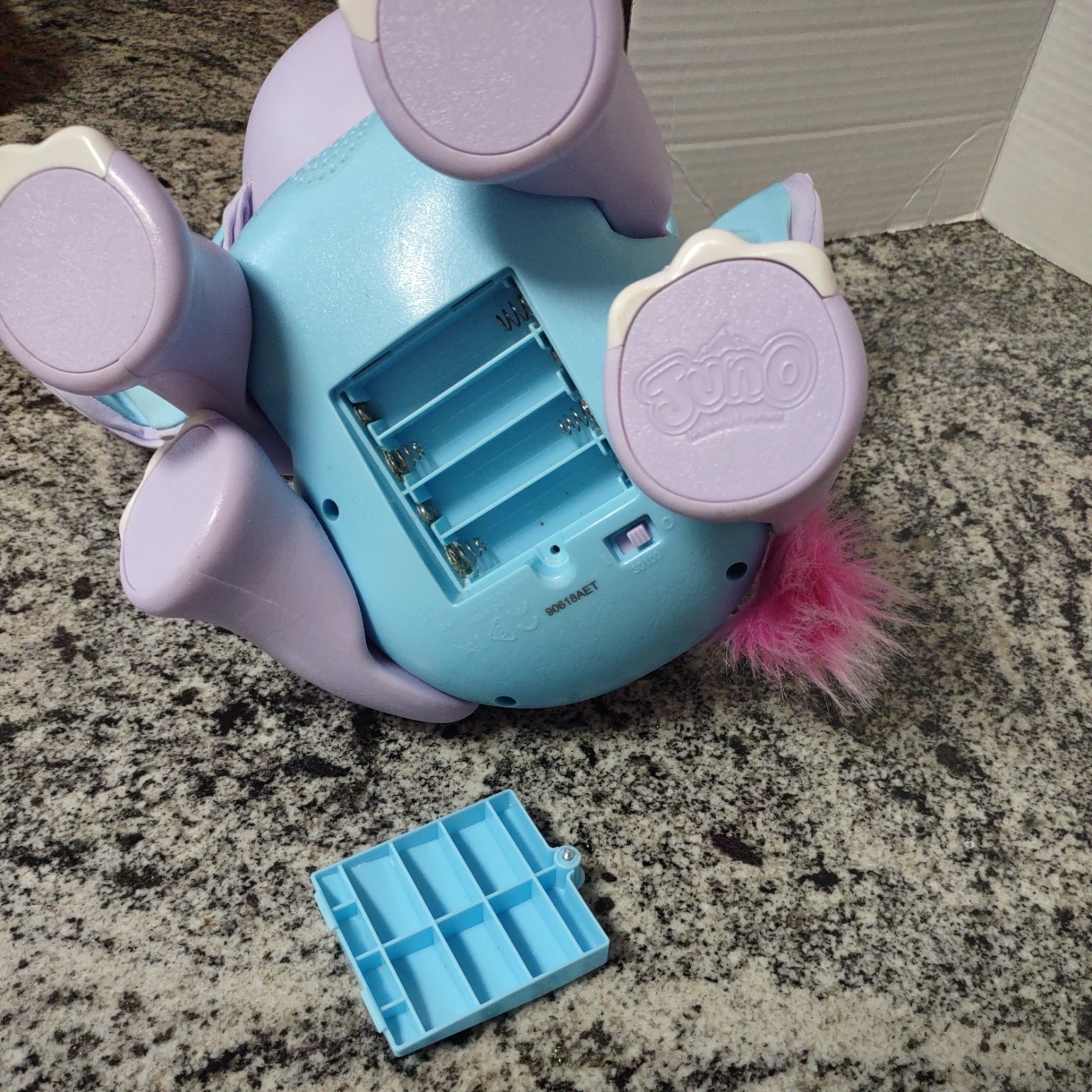 Spin Master Juno My Baby Elephant Sounds Talks Interactive Toy Works. please see video. Everything is working properly. requires 4 AA batteries, not included. has an on and off switch.