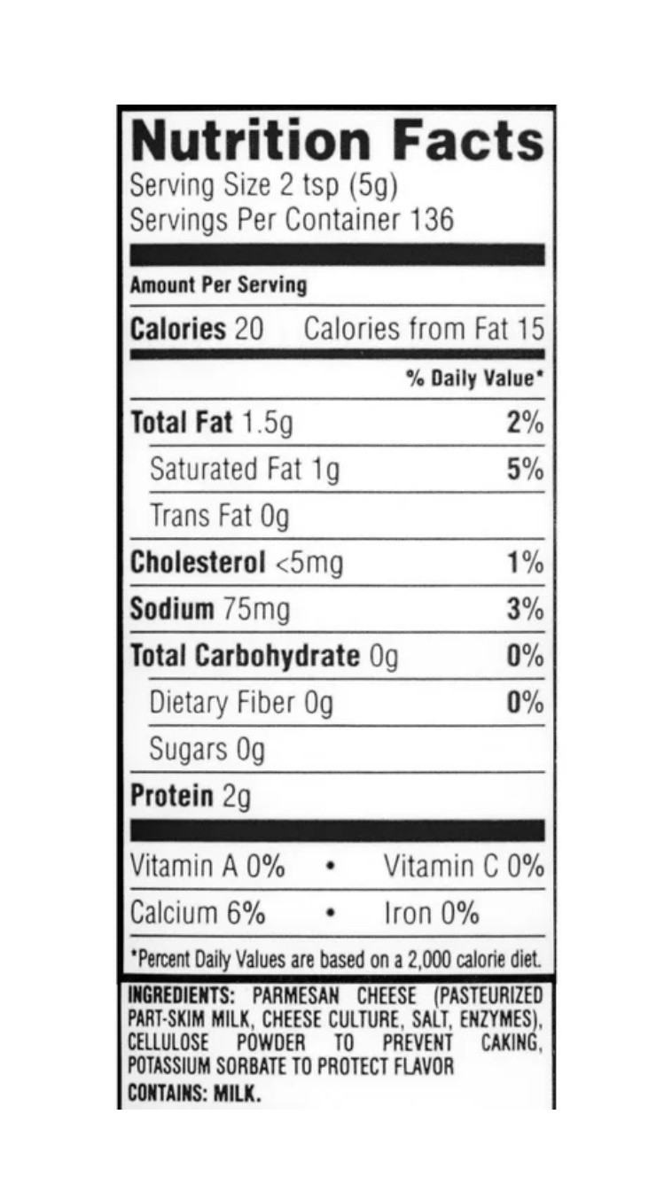 2 PACKS Kraft Grated Parmesan Cheese 24 oz. Specs