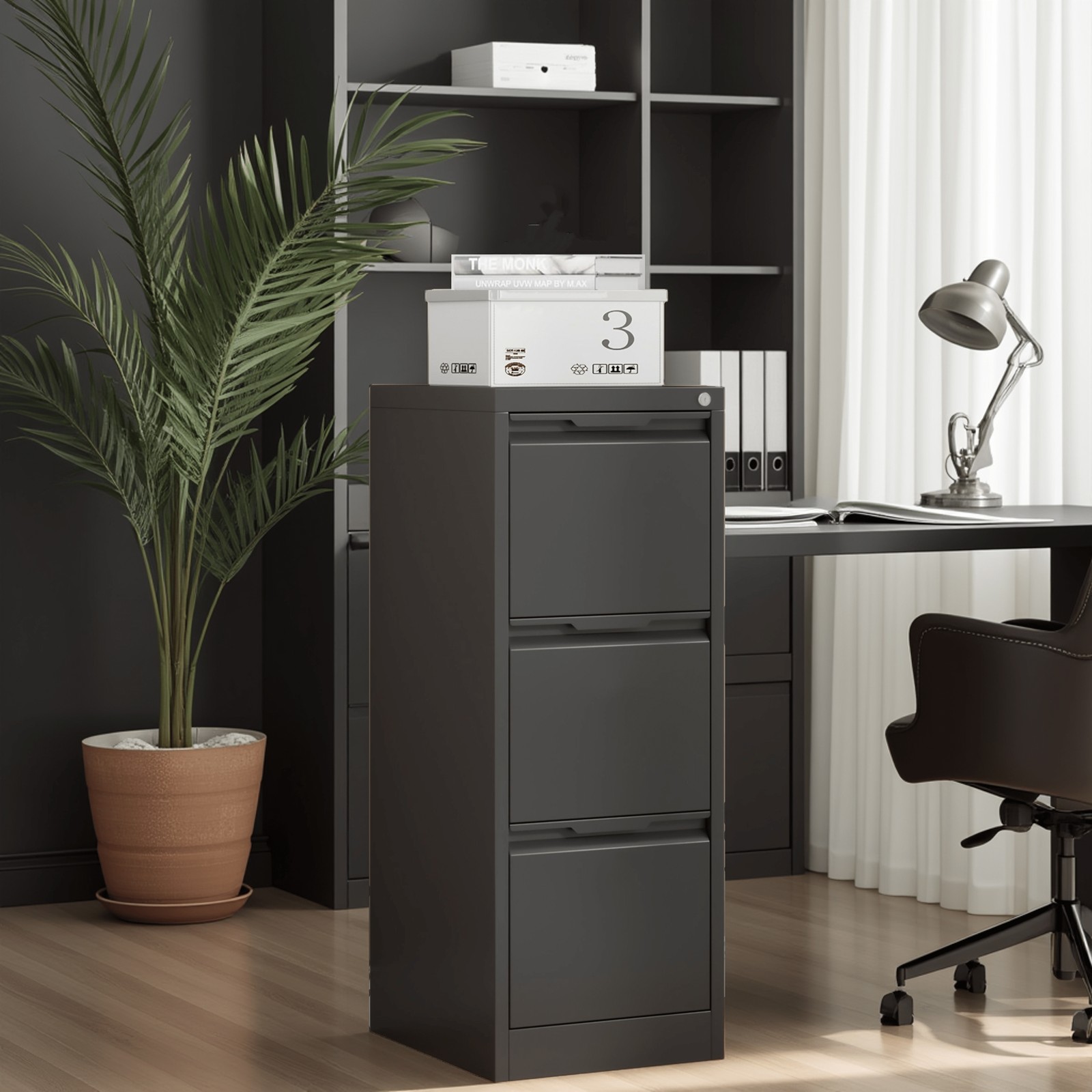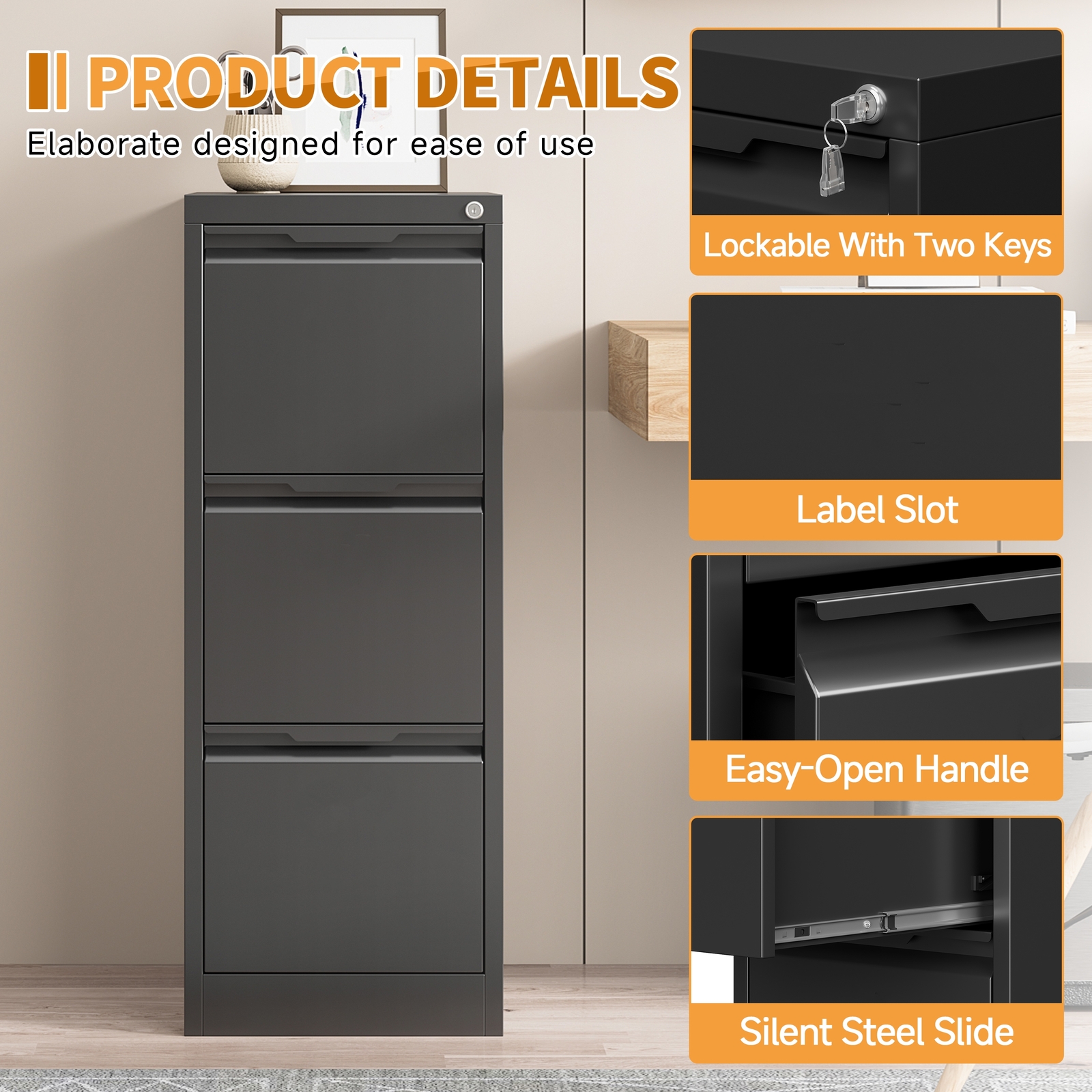 Locking Metal File Storage Cabinet with 3 Drawers for Home Office Filing CabinetAbout this item【Super Functional Vertical Filing Cabinet】: Our this file cabinet has three large drawers with 15.7 inches depth, which provides you with large enough storage space. And it is equipped with adjustable hanging rods to store different types of files, such as letter, legal, A4, F4