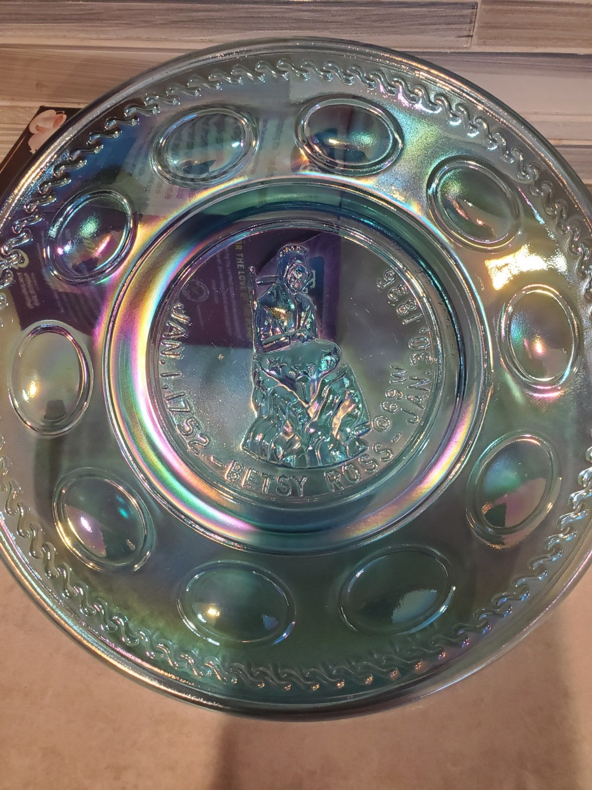 Vintage Wheaton Carnival Glass Plate "Betsy Ross" Great American. This carnival glass plate is in excellent condition. There are no chips, cracks, or damage of any kind. This would be an excellent addition to anyone's collection. View photos for overall condition.