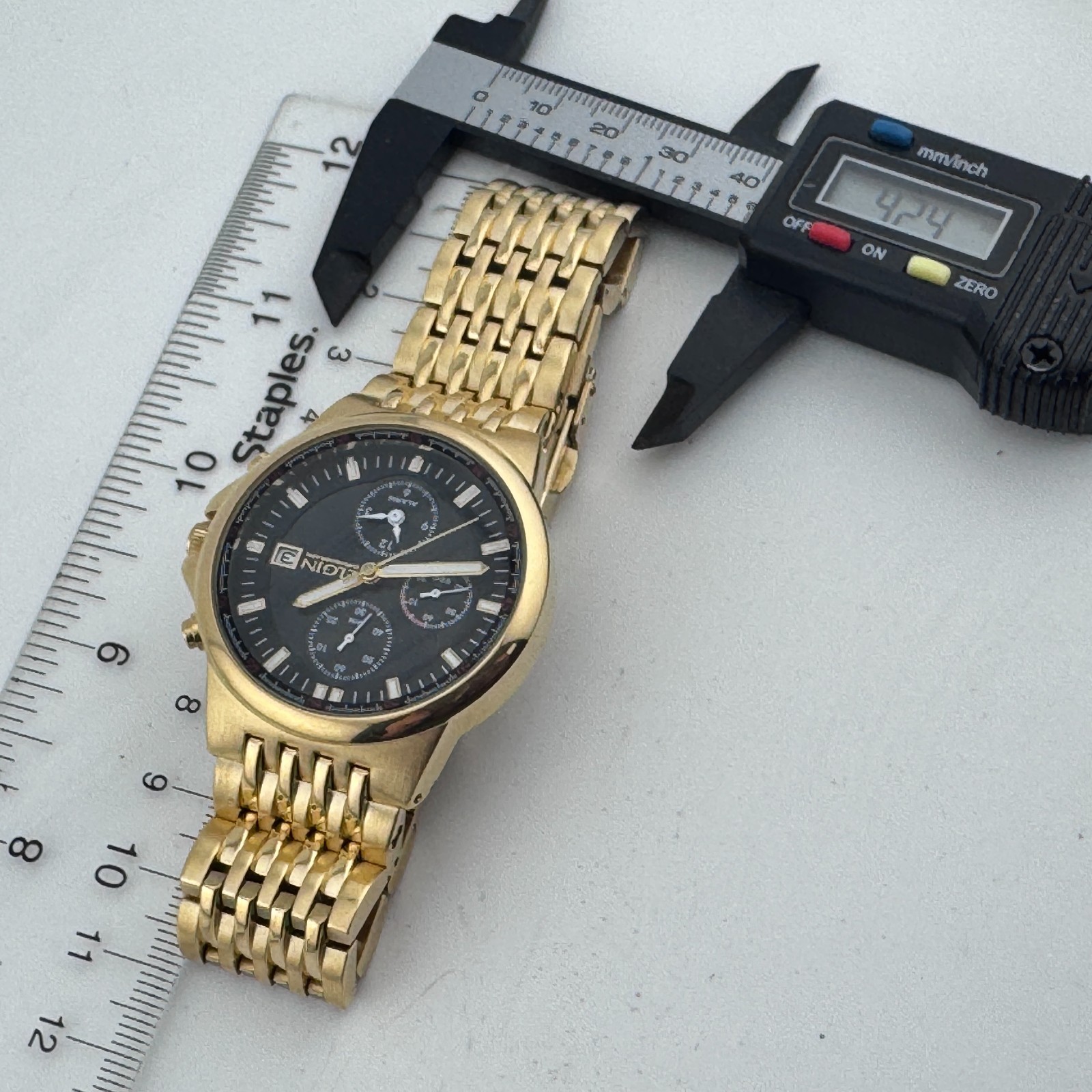 Elgin Quartz Watch FG1010 Men Gold Tone Alarm Chrono Analog ~For Parts Repair