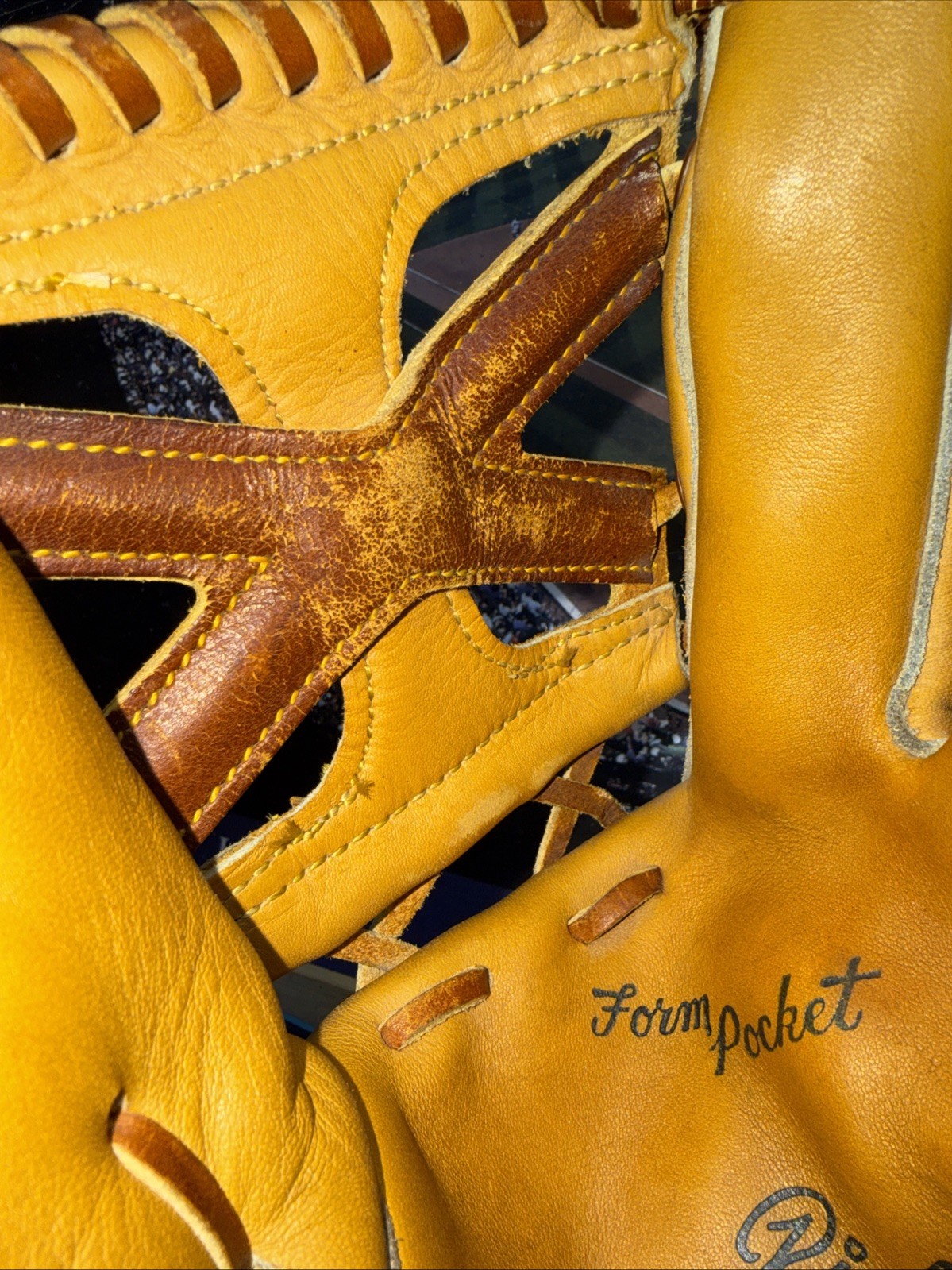 color retention throughout. Finger stalls are well shaped, heel is firm, and the glove holds its structure without stiffness. All original lacing is intact and correct, a major plus for both integrity and collectibility. Palm and heel stamps are clear and legible.This glove has been carefully cleaned and stabilized with respect for its age, materials, and history. No shortcuts. No over-conditioning. Only what was needed to help it last for the next generation. Every glove ships packaged for gifting, boxed and presented with the same pride and detail that goes into the restoration itself, ready to display, ready to give, and ready to enjoy from the moment it arrives.
