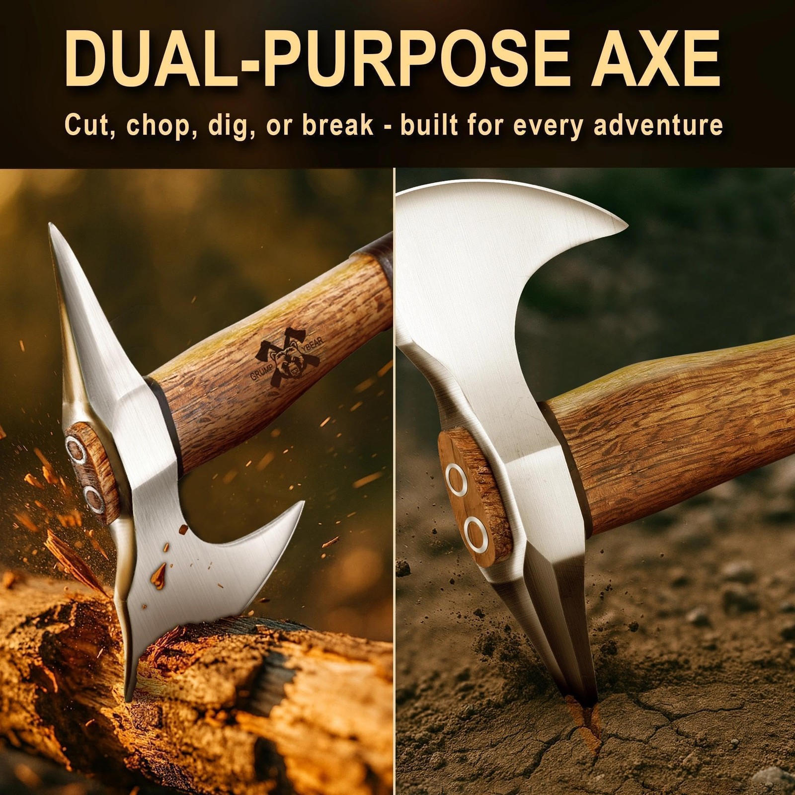 Grumpy Bear 15" Survival Axe Camping Hatchet – Forged Long, Silver-Long-Plus