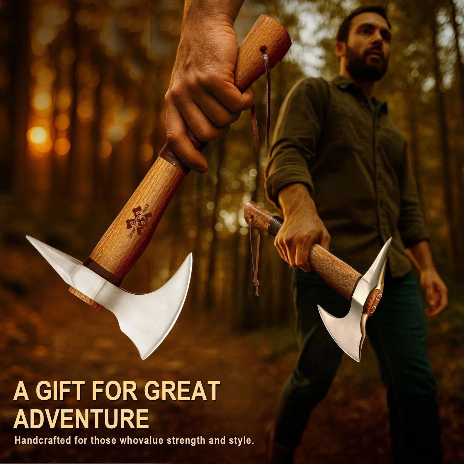 body html h3 p .a h2 div #content Grumpy Bear 15" Survival Axe Camping Hatchet – Forged Long, Silver-Long-PlusProduct Features HIGH CARBON STEEL BLADE: Crafted from high-carbon steel, this axe delivers outstanding cutting power, exceptional sharpness, and lasting durability, making it the perfect tool for heavy-duty outdoor chores like chopping and splitting wood. SMOOTH BLADE FINISH FOR CLEAN CUTS: The smooth, polished blade is designed for precise, efficient cutting, ensuring clean and effortless wood splitting with minimal effort. Whether you're clearing brush or chopping logs, the blade’s smooth finish enhances your cutting experience. ERGONOMIC LEATHER-WRAPPED HANDLE: Wrapped in fine leather, the handle is not only visually stunning but also offers exceptional comfort. It’s designed to minimize hand strain, making it easier to use for extended periods without sacrificing grip security. SECURE SAFETY LANYARD INCLUDED: A built-in safety lanyard offers extra protection, ensuring the axe won’t slip from your hands during use, even when you’re working in challenging environments or under adverse weather conditions. VERSATILE AND RELIABLE TOOL: Whether you’re out camping, hiking through the wilderness, or preparing for survival situations, this axe is a versatile companion that can tackle everything from kindling to large logs, offering dependable performance in all outdoor activities. Note: A thin protective oil is applied to the axe head to prevent rust during storage and shipping. Over time, this coating may dry and become sticky — this is normal. Simply wipe it clean with a dry cloth. If it has hardened, soak the axe head in warm water for a few minutes, then wipe it off easily. Shipping:Shipping is complimentary within the lower 48 US States. We Do Not Ship to PO/APO Boxes, HI or Alaska We Do Not Ship Outside of the Continental US All items ship within 24-72 hours of Payment For large items that require Freight shipping a valid phone number is required to call and schedule your deliveryTerms of Sale and Feedback: Feedback is extremely important to us and eBay If you are satisfied with our transaction, please take a moment to leave Positive Feedback. YOUR Satisfaction is our Priority! If there are any issues, PLEASE contact us BEFORE leaving a neutral or negative rating so that we may resolve any concerns. We PROMISE we can make you happy if you give us a fair chance. Returns / Concerns: All items qualify for returns within 14 - 30 days of receipt. Buyer is responsible for return shipping on any item that is not damaged Please be sure this is an item you want before making your purchase. Customer Satisfaction is our TOP priority! All items are IN STOCK at time of listing. Inventory on eBay changes constantly and it is impossible to maintain a perfectly accurate count of all items. Please do not penalize us if we have to issue you a refund! Thank You For Your Business!