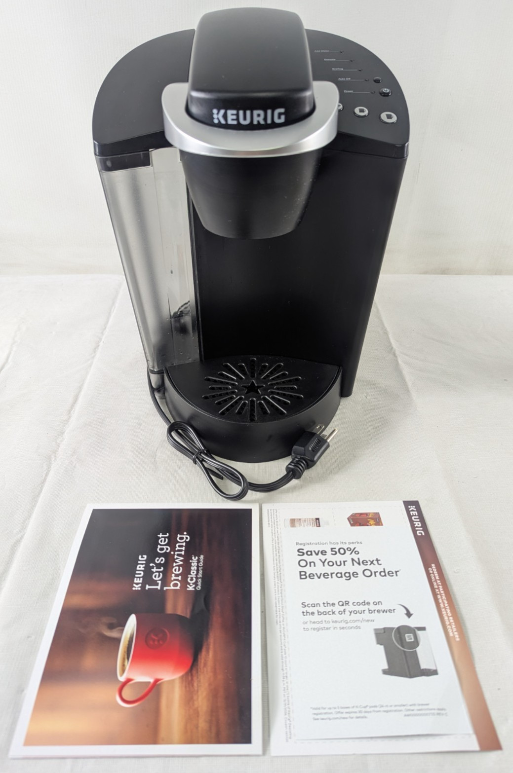 Please refer to photos for condition and what is included. Product is used, but otherwise functions as intended.Orders made from the previous day will ship on the next available business day, which will be Monday through Friday mornings (ET/UTC -5). Orders made on Friday afternoon or over the weekend will be shipped on the next business day, which is typically Monday. During major US holidays, such as Independence Day, Thanksgiving, Christmas, and New Years, please expect our shipping to be delayed by two or more days as these holidays are observed.If you have any issues with your order, please feel free to reach out to us directly via messages and we will get back to you as soon as possible. If you need to open a return for an order, please review eBay's condition of returned items policy at the following link: https://www.ebay.com/help/policies/member-behaviour-policies/condition-returned-items-policy?id=4763Description: The Keurig K-Classic® coffee maker brews a rich, smooth, and delicious cup every time with the quality you expect from Keurig®. Simple touch buttons make your brewing experience stress free, and multiple K-Cup® pod brew sizes help to ensure you get your perfect cup. Whether you like your coffee strong, mild, decaf, or flavored, you can brew all of your favorites with the Keurig® K-Classic® coffee maker – and with large 48oz water reservoir, you can brew mulitiple cups before having to refill. Discover hundreds of K-Cup® pod varieties from all of the brands you love, and enjoy coffee, tea, hot cocoa and more. Also available in a two fun colors to complement your décor, and compatible with the Keurig® Classic Series My K-Cup® Reusable Coffee Filter, so you can brew your own ground coffee.*Cup not included*About this product: • BREWS MULTIPLE CUP SIZES: (6, 8, 10 oz.) the most popular K-Cup pod brew sizes. Use the 6oz brew