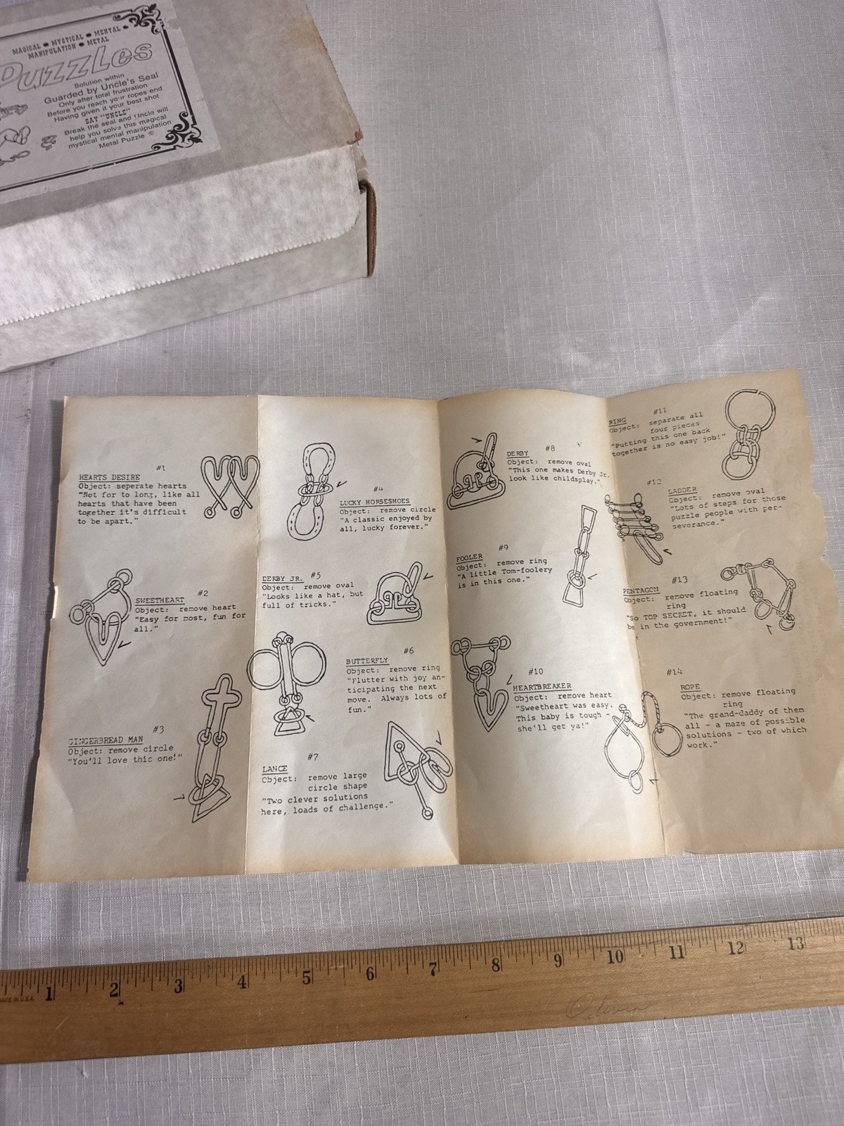 Uncle’s Puzzles Vintage Metal Brain Teaser Puzzle Original Box Instructions