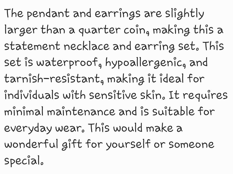 The Heart Stainless Steel Statement Earrings and Necklace Set is a stylish and eye-catching jewelry set made from high-quality stainless steel. This set includes a pair of statement earrings and a matching necklace, perfect for adding a touch of glamour to any outfit. The sleek and modern design of the heart-shaped pieces makes them a versatile accessory that can be worn for various occasions. Made from durable stainless steel, this set is sure to last for years to come and make a bold fashion statement.