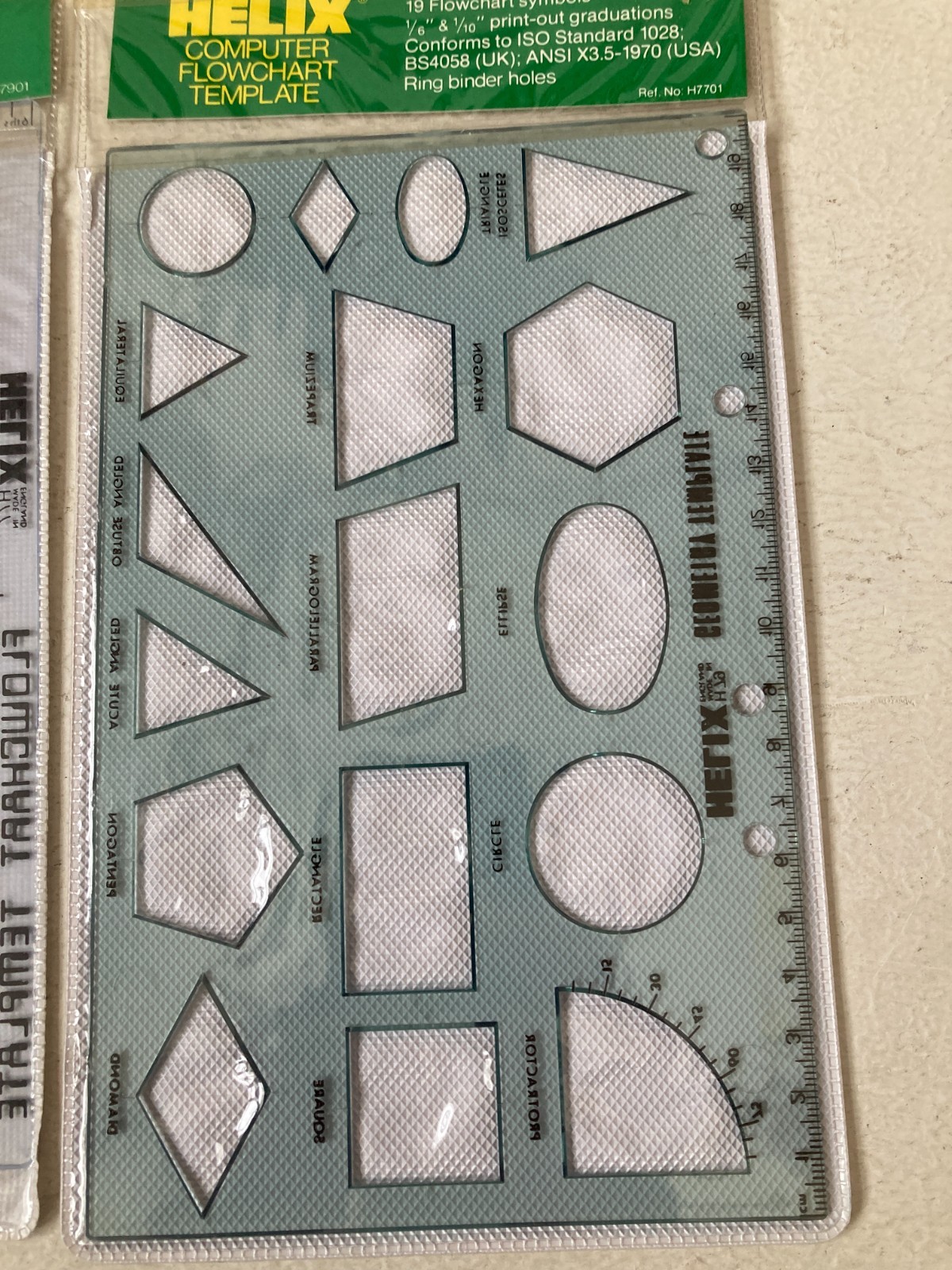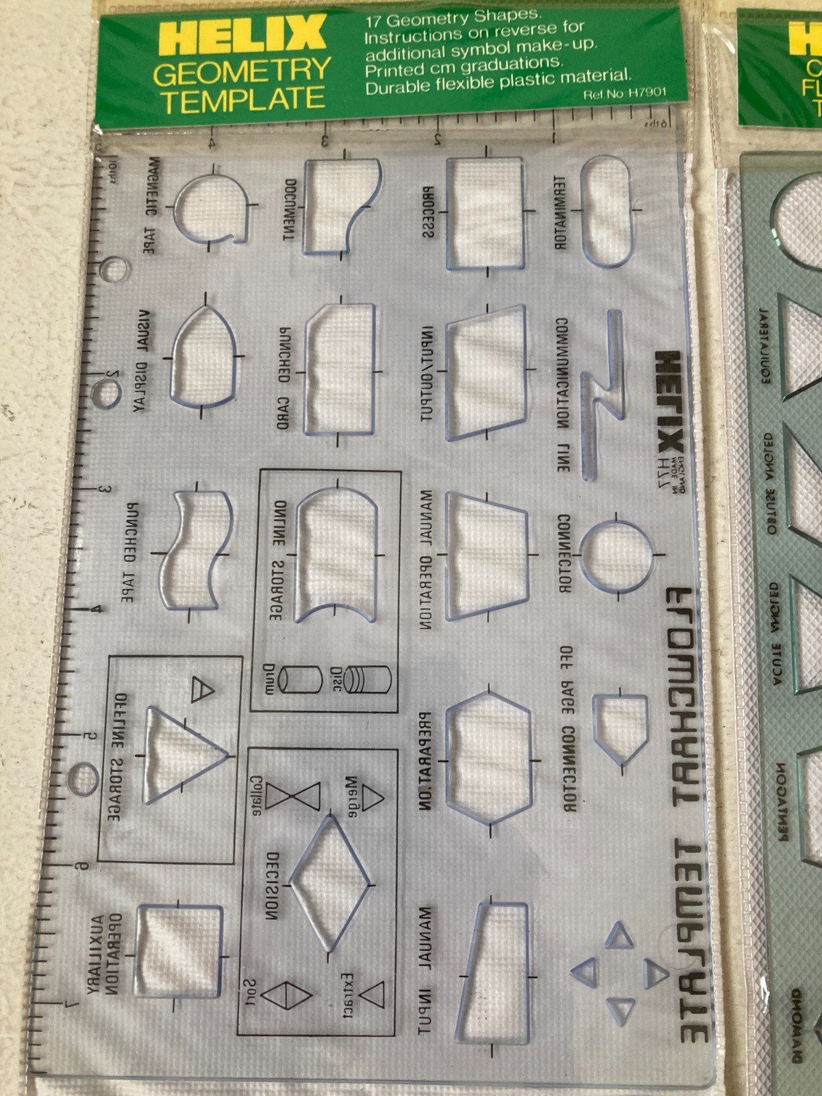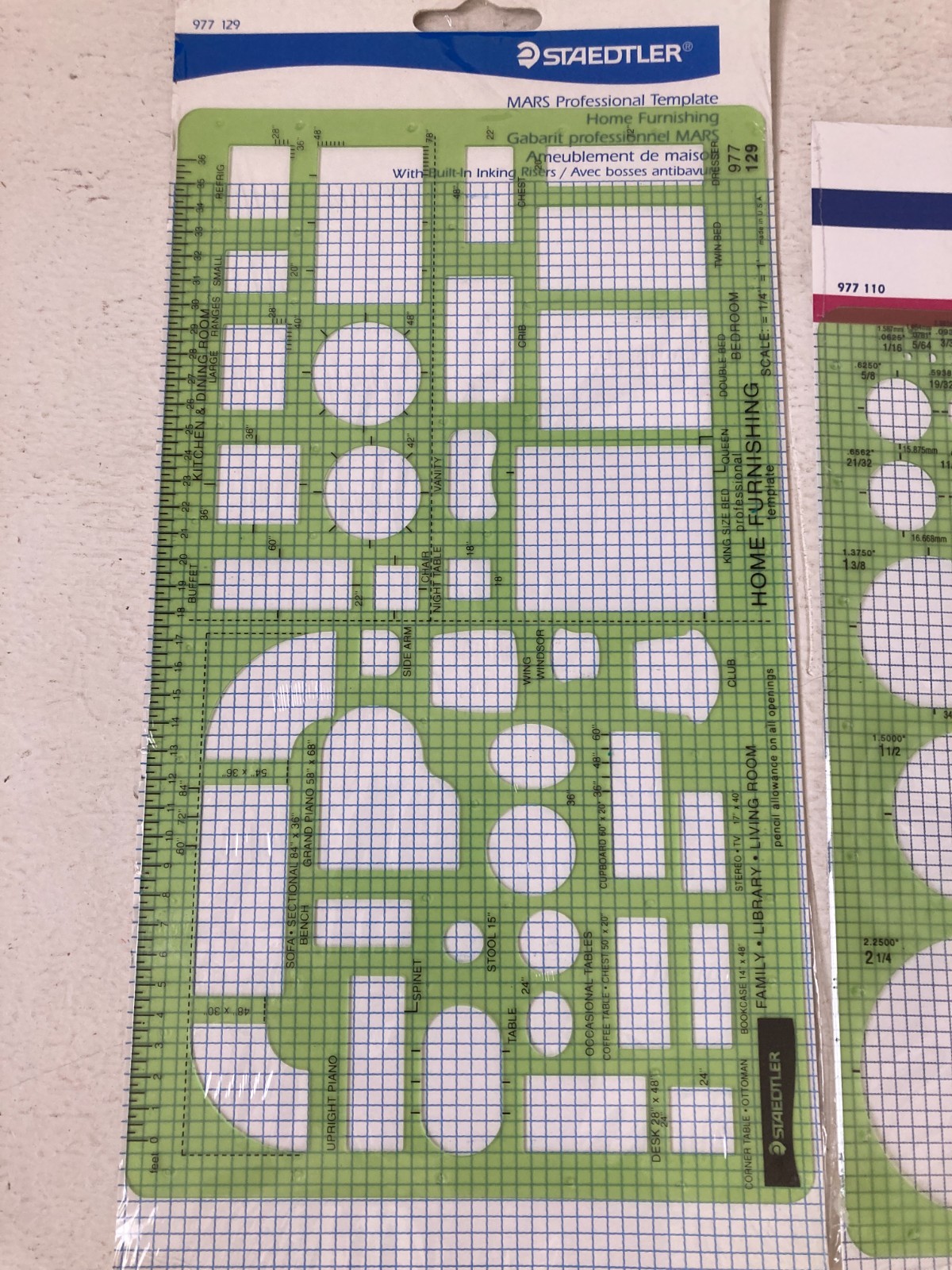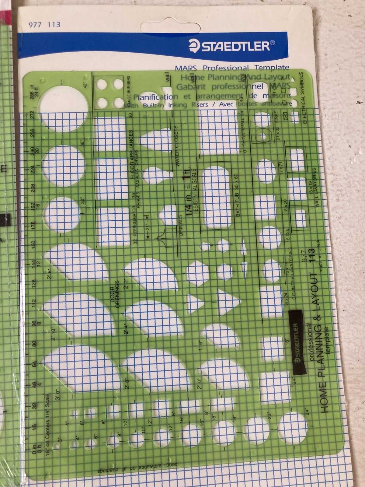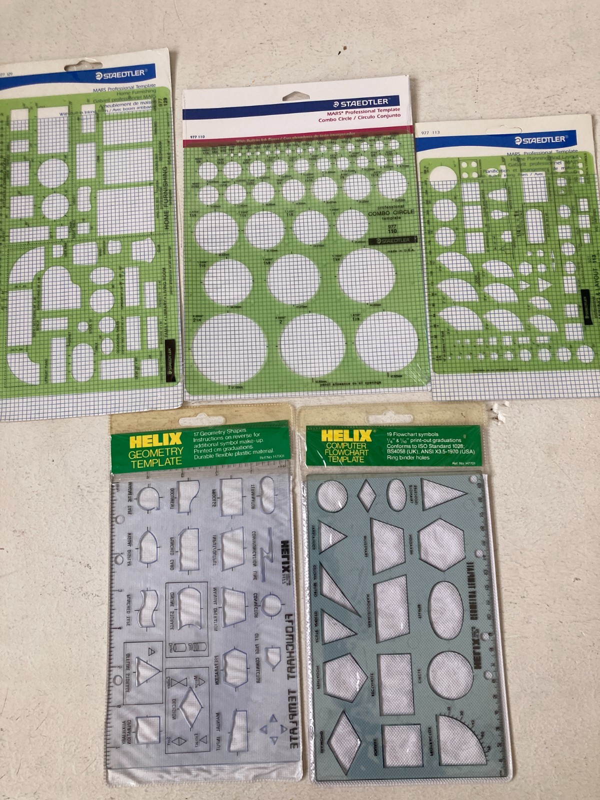 Staedtler and Helix Templates Lot of 5 MARS Professional Template Geometry CompuStaedtler TemplatesMARS Professional Template - Home Furnishing - Gabarit professional MARS 977 129MARS Professional Template - Circle Combo 977 110 MARS Professional Template - Home Planning and Layout - Gabarit professional MARS 977 113Helix Templates Helix Geometry Template - 17 Geometry Shapes H7901Helix Computer Flowchart Template - 19 Flowchart symbols H7701