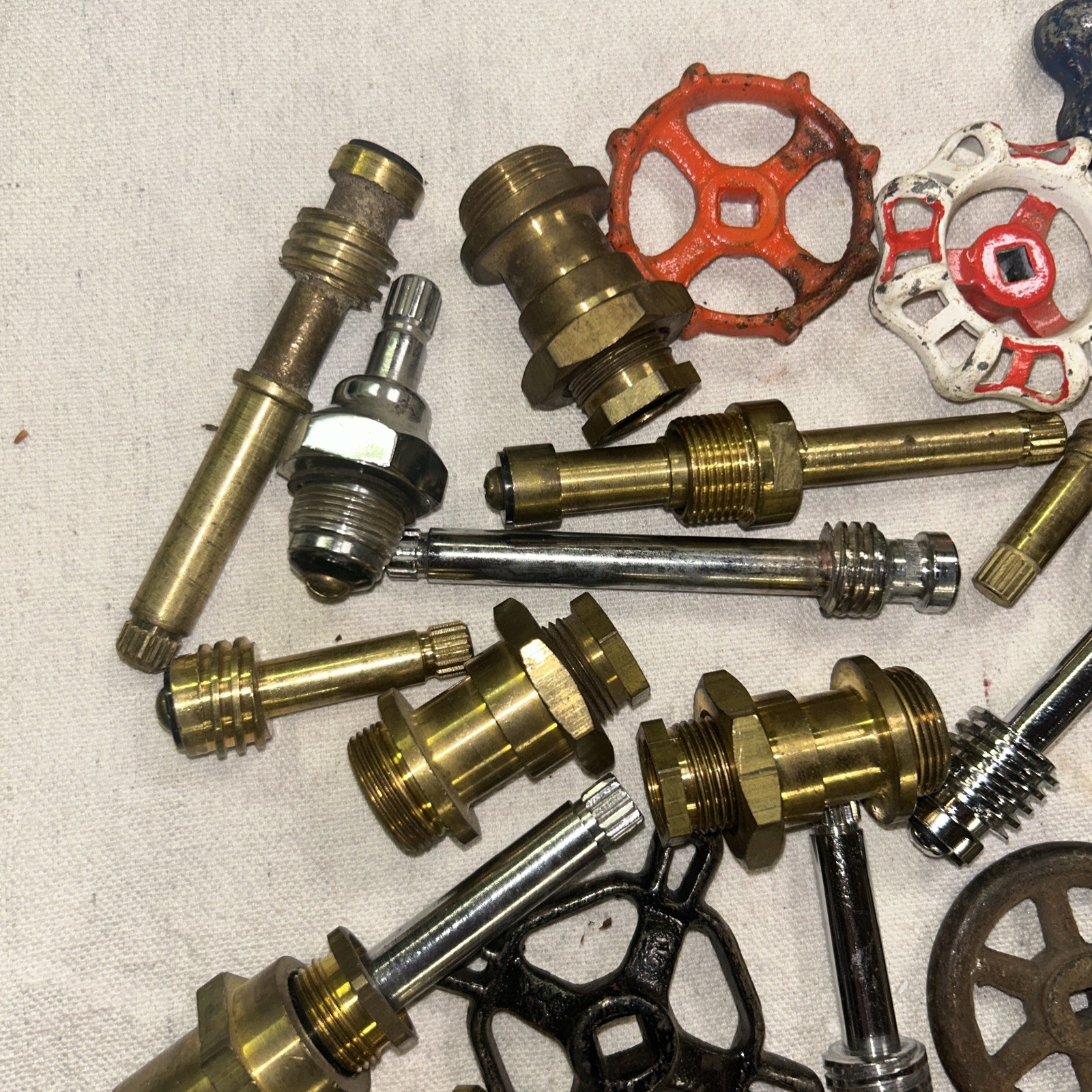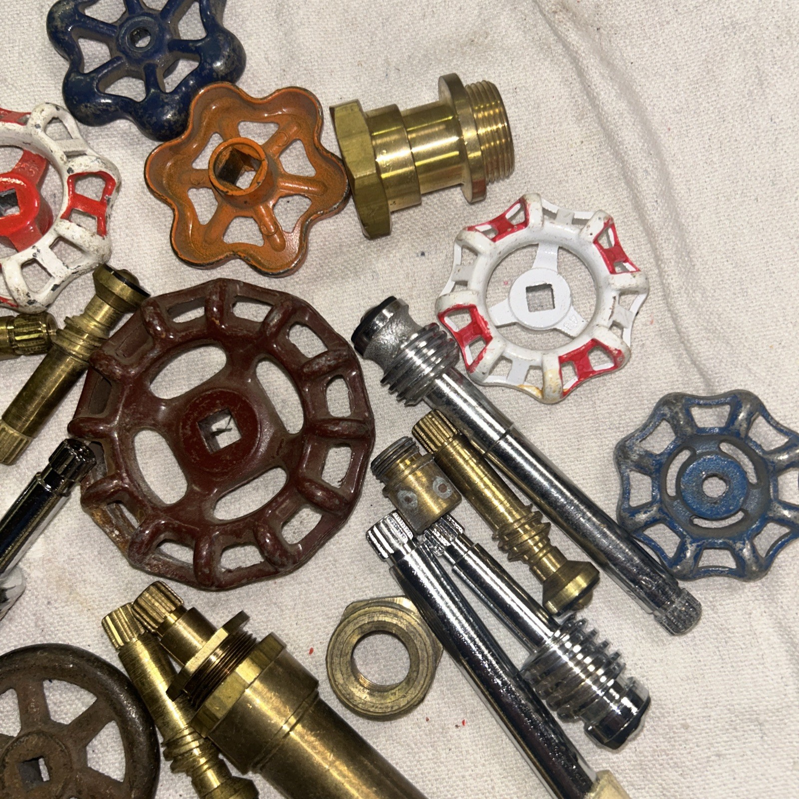 BRASS PLUMBING PIECES, BRAND NEW TO MAKE ANYTHING ART, YOU WILL RECEIVE ALL PIECES IN THE FIRST PICTURE TO MAKE YOUR PROJECT. HAVE MANY MORE STEMS AND HANDLES, ALL BRAND NEW FOR SALE. USE YOUR IMAGINATION!! THANK YOU.