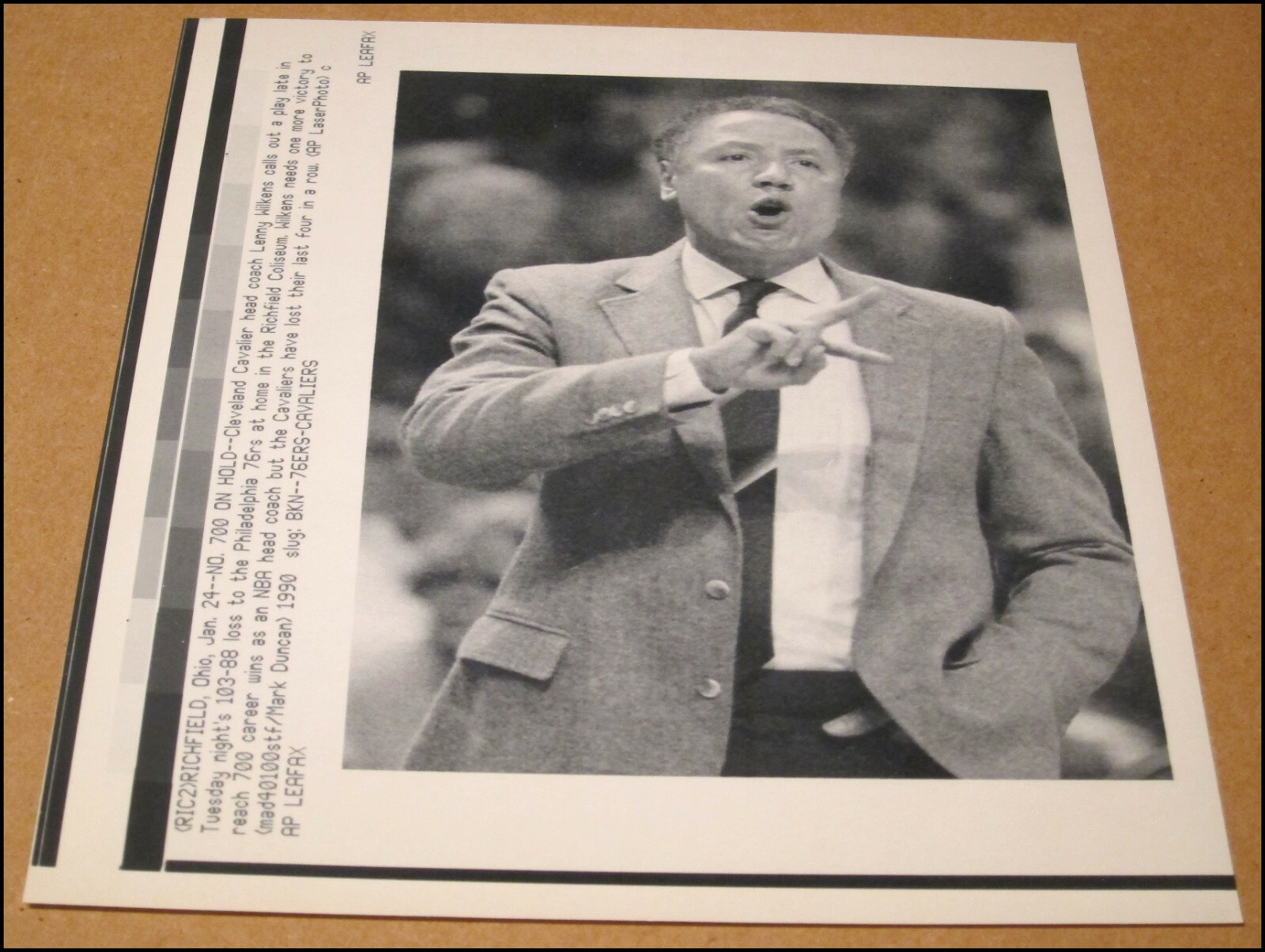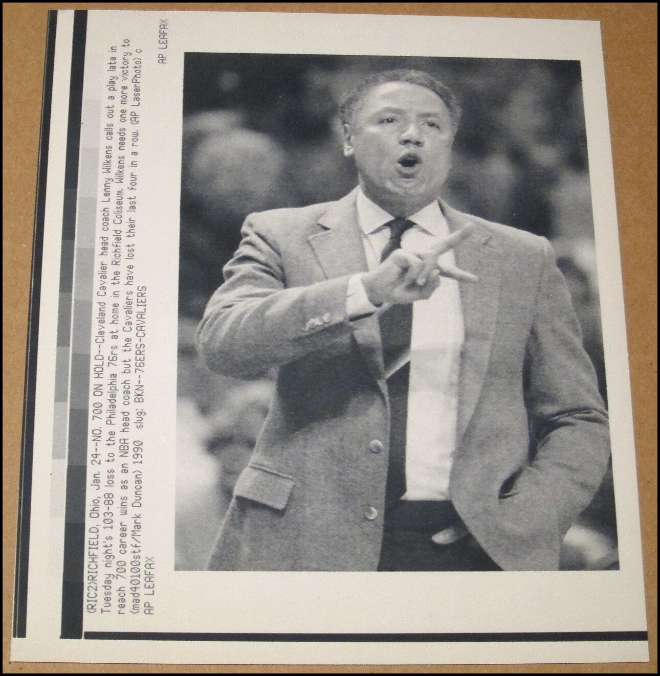 1/24/1990 Wire Press Photo1/24/1990 AP Wire Press PhotoPictured: Cleveland CavaliersHead Coach Lenny WilkensLocation: Richfield Coliseum,Cleveland, OhioMeasures: about7.25" x 8.5" Condition: Like-NewFree shipping in the U.S.A. International buyers please inquire about shipping costs