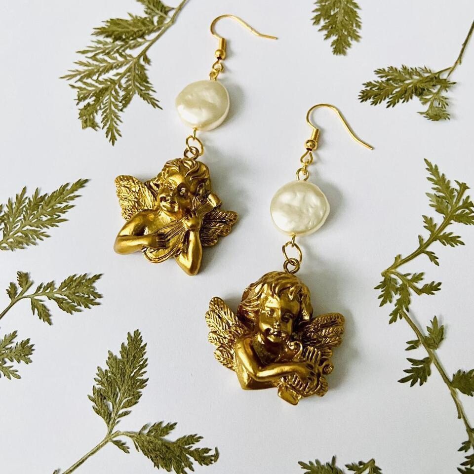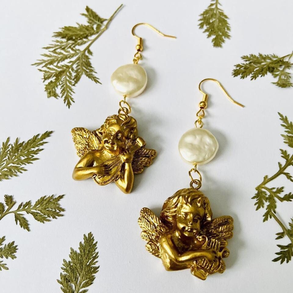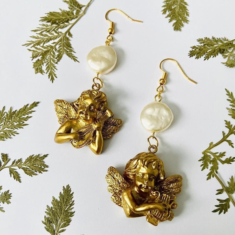 Handmade freshwater pearls & golden angels earrings!✨