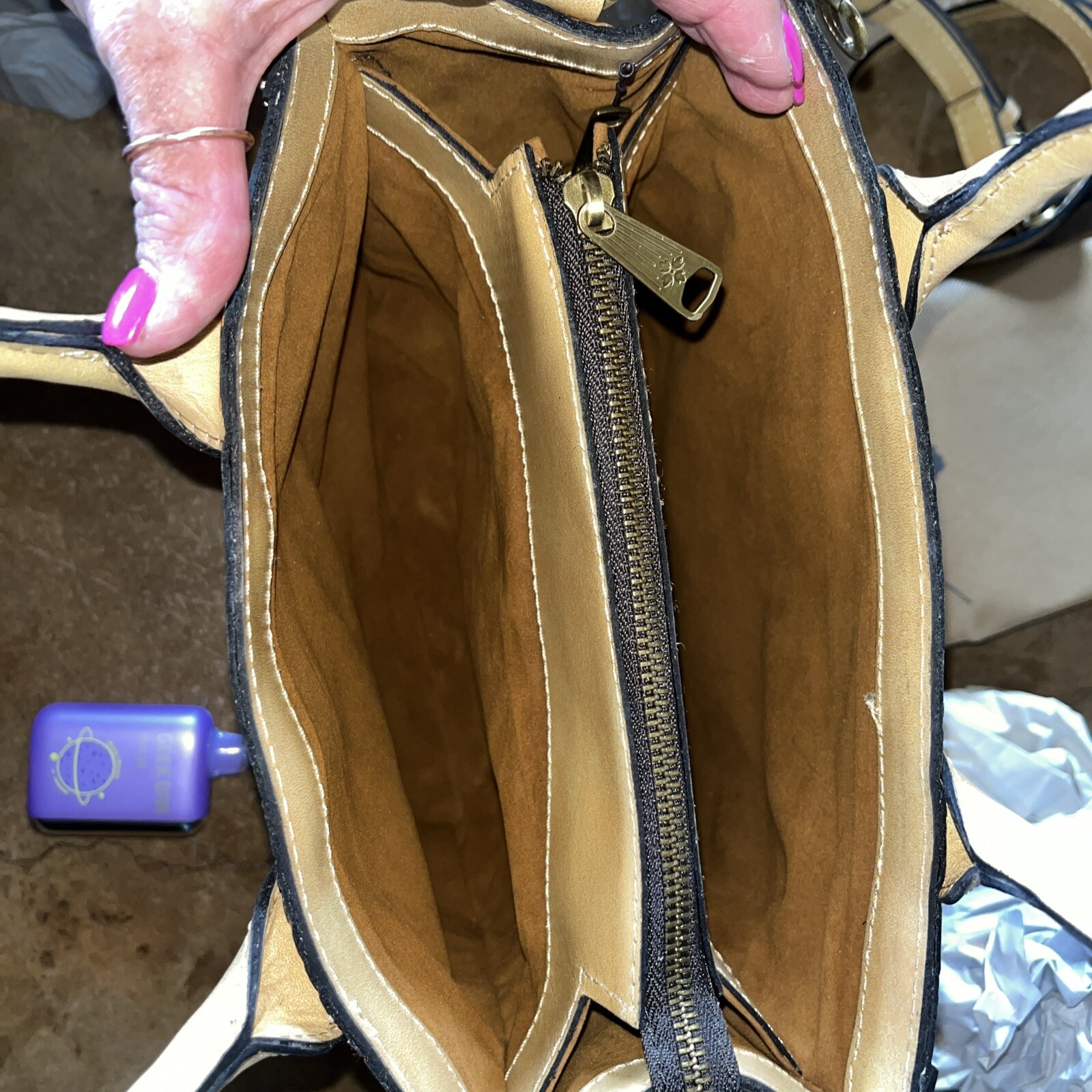 This stunning Patricia Nash Curry Tote Bag is a must-have for any fashion-forward woman. Crafted from high-quality natural leather, this medium-sized tote features a beautiful floral pattern and a polished finish. The bag has a rectangular shape with a zipper closure and a top handle in a natural leather style. The tote comes with a variety of features, including inner and outer pockets, an audio pocket, and a lined interior with fabric lining. It also includes an original dust bag for storage. This bag is perfect for any occasion, whether it's a party or a casual day out. The hardware is bronze in color, and the strap drop ranges from 21-24 inches. The tote is part of the Curry product line, and it is not handmade.Please contact me if you need any more information
