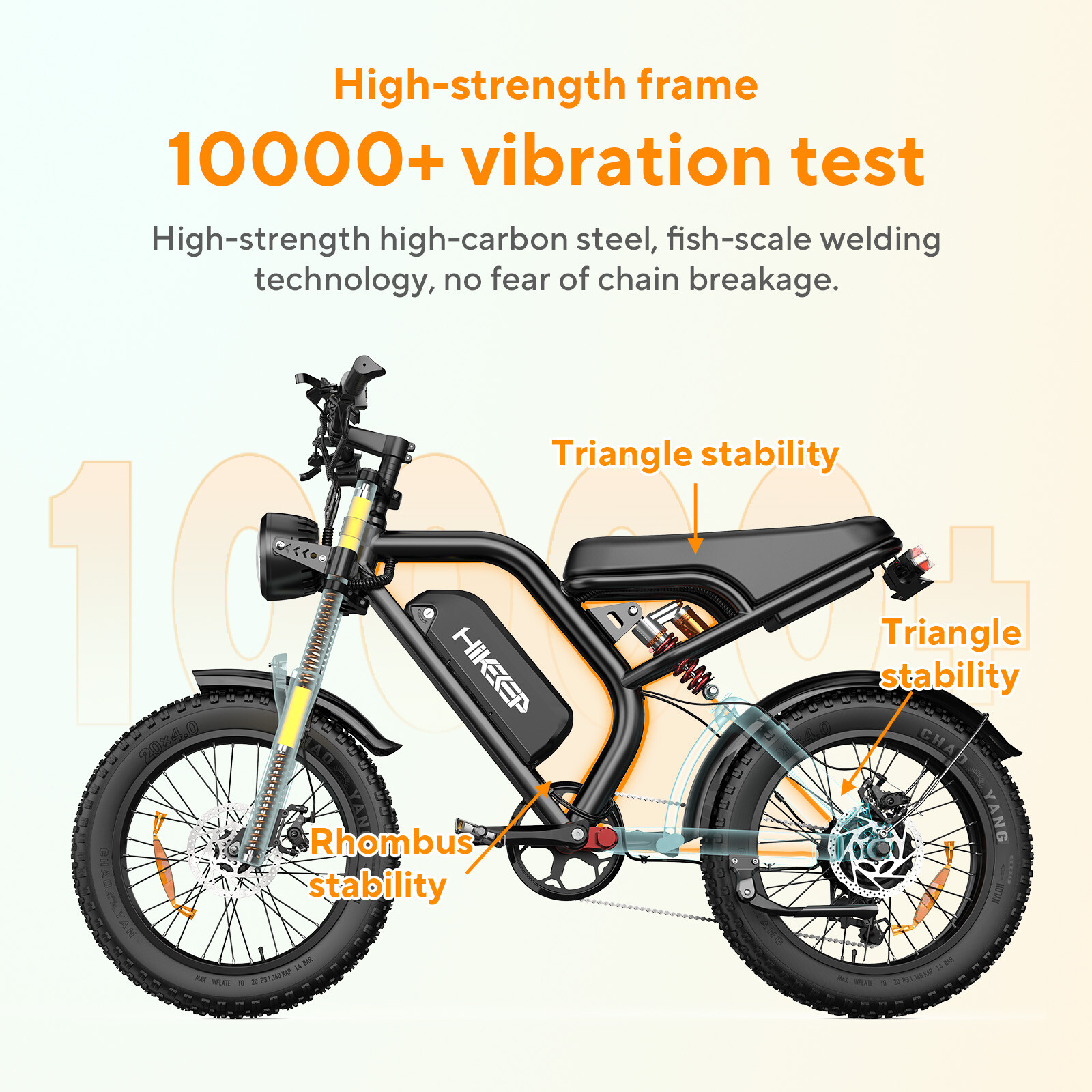 Item Description: The following is a startup tutorial for the K6 series that you can use as a reference : HiKeep K6 series Startup Tutorial:https://youtube.com/shorts/56JR-NRhJS4?feature=share 🚵【 2024 New Upgraded Electric Bike】 HIKEEP's adult electric bike is equipped with a 1000 Peak brushless gear motor. In electric mode, you can effortlessly reach speeds up to 28MPH , easily overcoming slopes up to 30 degrees. Fully charged in only 5-7H.In the assist mode,capable of driving 20~30 miles on a single charge. You no longer have to worry about exhausting your energy during the exploration process. 🚵【Safety and Stability for Optimal Riding Experience 】 Our Dirt Electric Bike for Adults features a 5-stage full suspension system including two fork spring dampers, a seat spring damper and two 20 " puncture-proof fat tires that absorb shocks and bumps. Conquer all terrains with confidence. Dual disc brake system reduces braking distance for safer and more reliable riding even in extreme weather conditions. 🚵【New Electric Bicycle Design】This electric bicycle for adults is based on a retro design and combined with high-quality carbon steel materials, making it more durable and able to easily support a weight of 330 pounds. Bright headlights and taillights provide strong protection for nighttime driving. The intelligent LCD display provides real-time comprehensive driving data, allowing you to easily grasp the driving